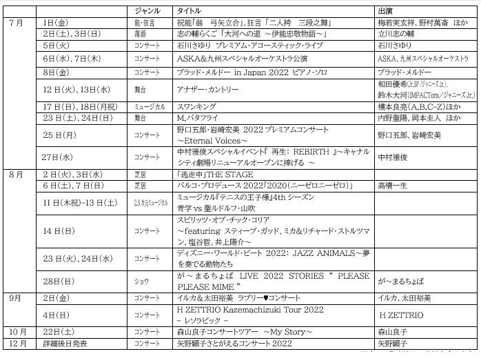 福岡 キャナルシティ劇場 2022年7月からの上演ラインナップを発表