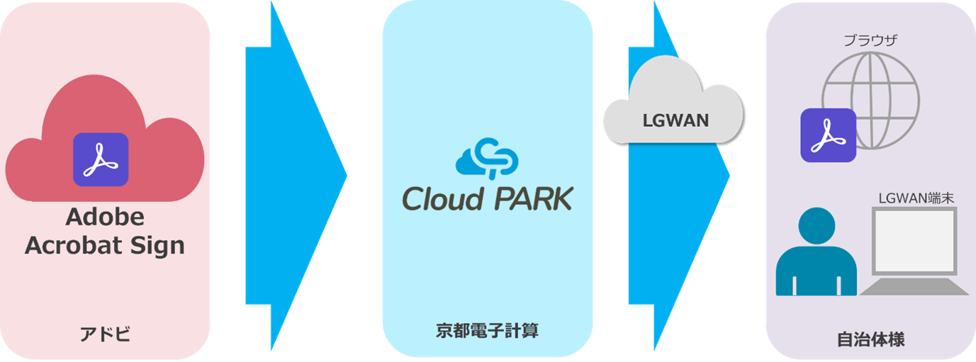 アドビ株式会社(本社:東京都品川区、代表取締役社長:神谷 知信、以下 アドビ)は、京都電子計算株式会社(本社:京都府京都市、代表取締役社長:山本 忠道、以下 京都電子計算)提供の自治体向けクラウドサービス事業「Cloud PARK」が、「Adobe Acrobat Sign」(https://www.adobe.com/jp/sign.html)に対応したことにより、総合行政ネットワークLGWAN環境内で「Adobe Acrobat Sign」の利用が可能になることをお知らせします。本年夏に実証実験を実施し、早々に正式リリースを予定しております。