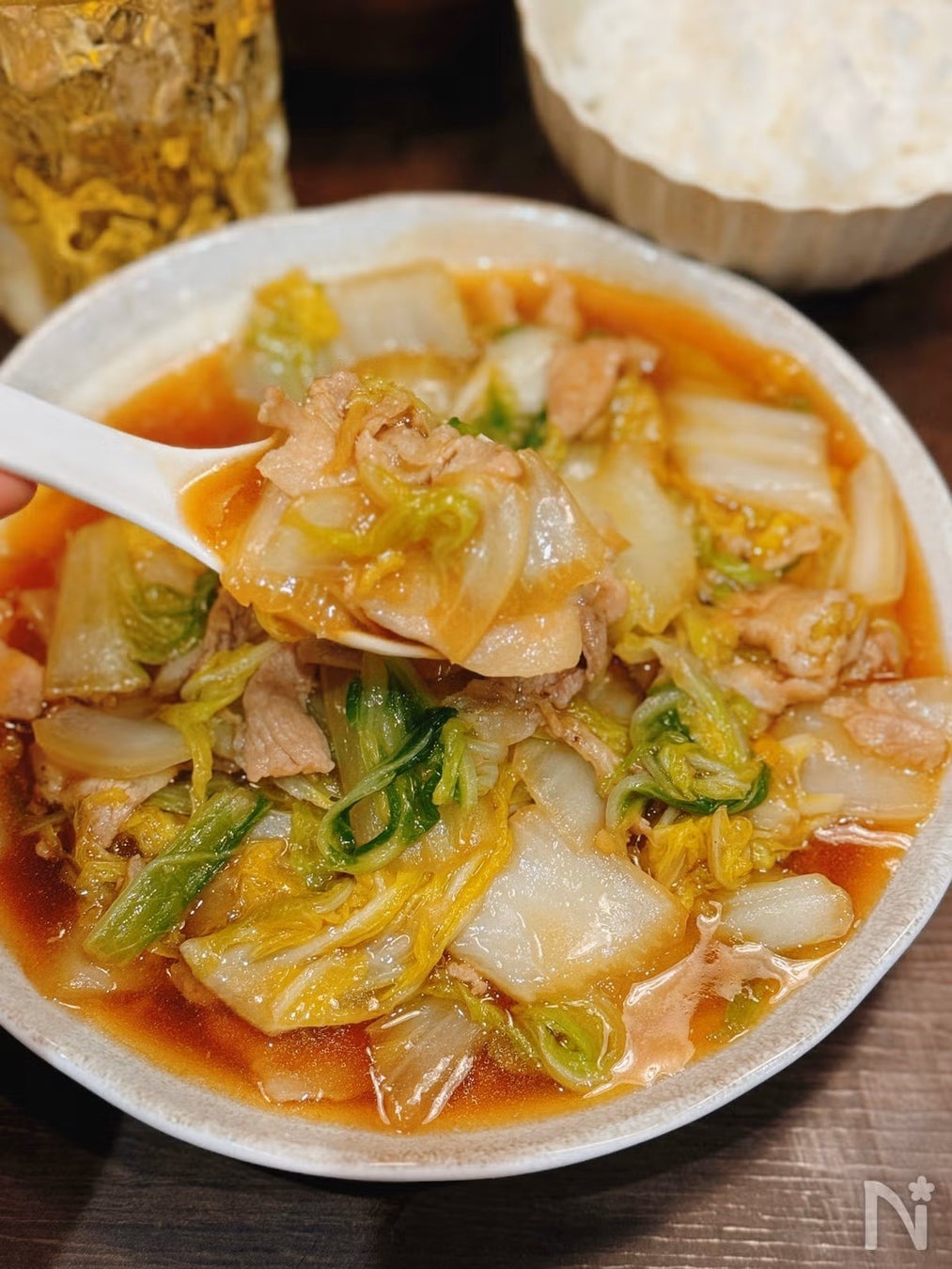 オイスターソースと醤油のうま味が重なり合う、コク深い一品です。ひと口頬ばれば、香ばしさと濃厚なうま味がふわっと広がり、箸が止まらなくなる美味しさ。豚バラ肉のとろける脂と白菜の優しい甘さが絶妙に絡み合い、ご飯にのせて丼にしても抜群です。