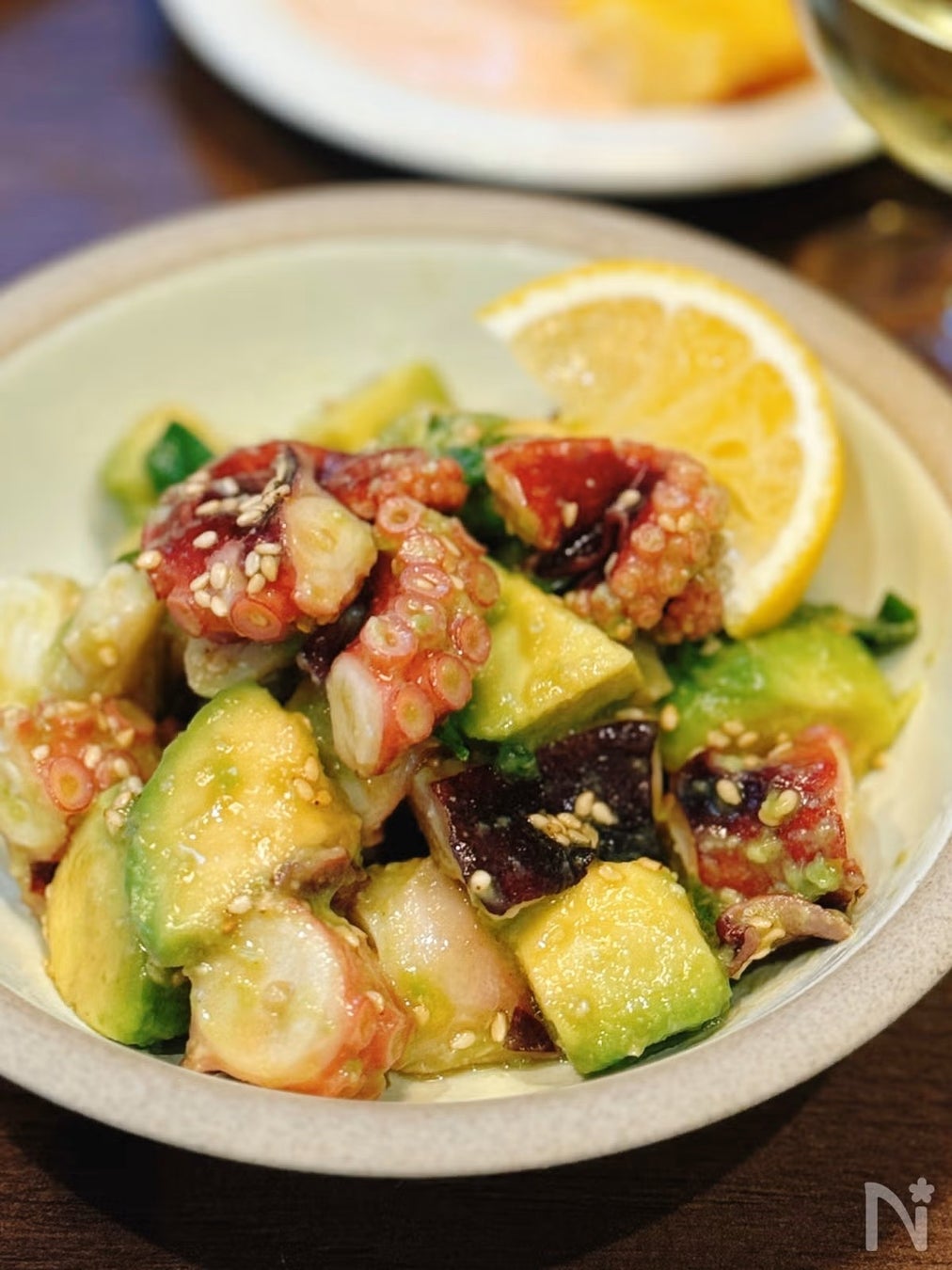 わさびの香りとポン酢の酸味が、素材のうま味を際立たせるレシピです。ぷりぷりのタコとまったりとしたアボカドの食感のコントラストも楽しいひと皿。彩りも良く、食卓が華やぎます。さっぱりとしていながらも、タコのうま味と風味がしっかり感じられる一品です。