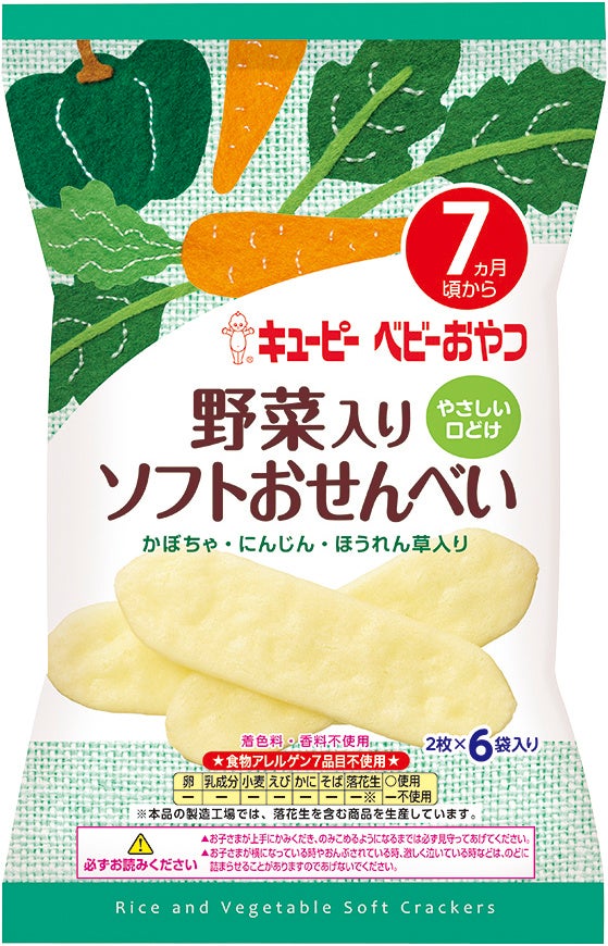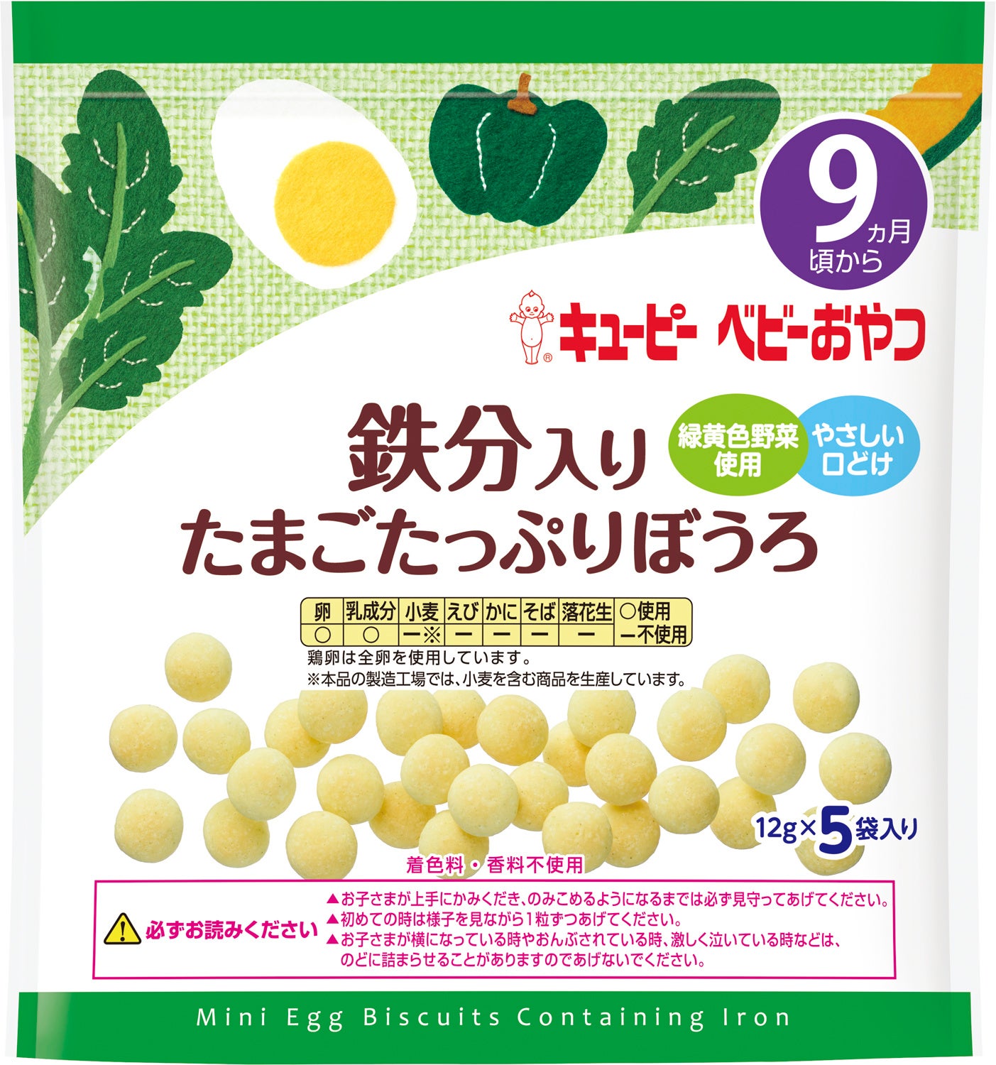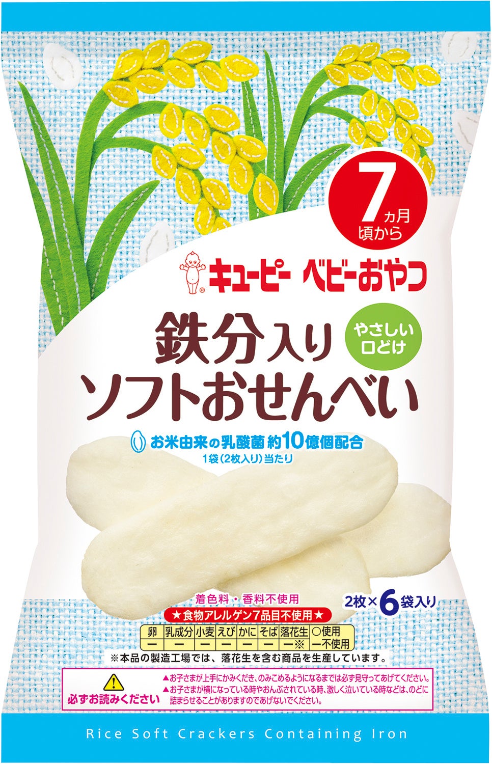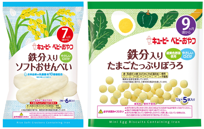 キユーピー株式会社(本社:東京都渋谷区、代表取締役 社長執行役員:長南 収、以下キユーピー)は、乳幼児向け「ベビーおやつ」シリーズから、「鉄分」を手軽に取れる、月齢7カ月頃からの「鉄分入りソフトおせんべい」と、9カ月頃からの「鉄分入りたまごたっぷりぼうろ」の2品を新発売します。併せて既存品の「野菜入りソフトおせんべい」の包材を変更し、プラスチック使用量を従来比で35%削減します。