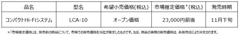 コンパクトHi-Fiシステム「LCA-10」を発売