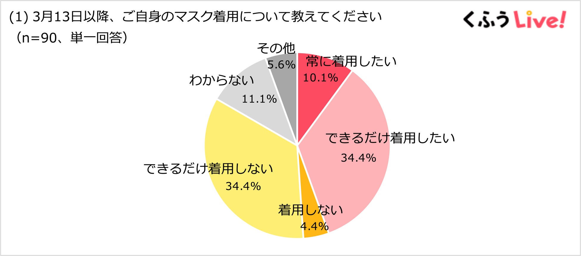 - 3月13日以降のマスク着用について、「脱マスク派」と「着マスク派」が拮抗