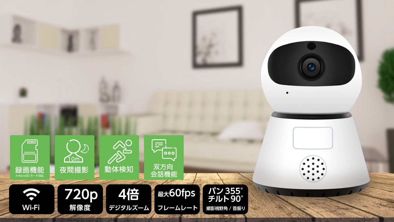 - スマホから上下左右の見たい方向に部屋全体の様子が確認可能 無線LAN接続 小型ネットワークカメラ 2個で通常価格6,960円(税込)→5,568円(税込) 1個ご購入の場合→3,480円 (税込)