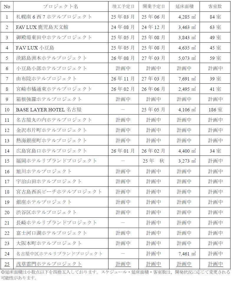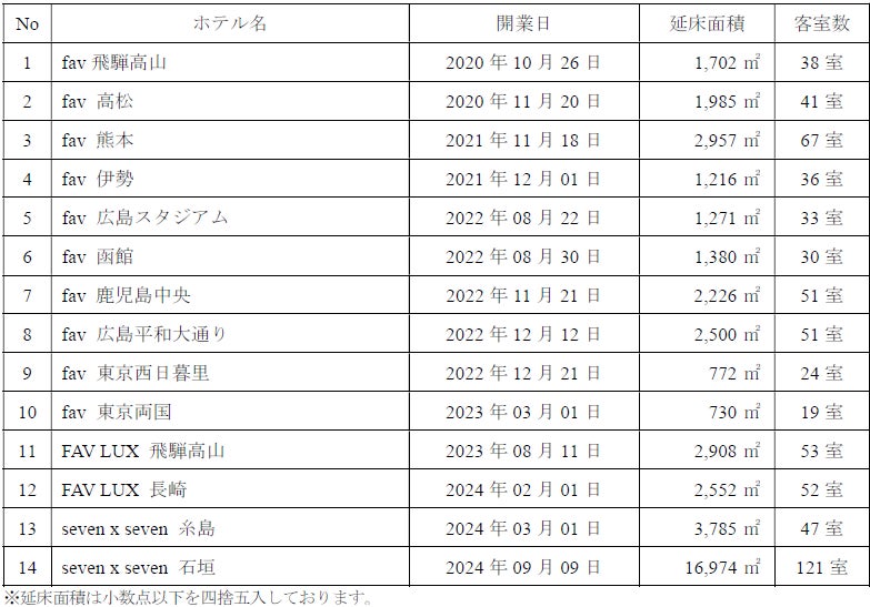 当社は、観光立国の実現や地域創生への貢献を目的にホテルの開発に取り組んでおり、多人数向けホテルブランド(『fav』『FAV LUX』『seven x seven』)を全国で展開しております。このたび、当社グループのホテルブランドの開発用地を新たに販売用不動産として取得いたしました。