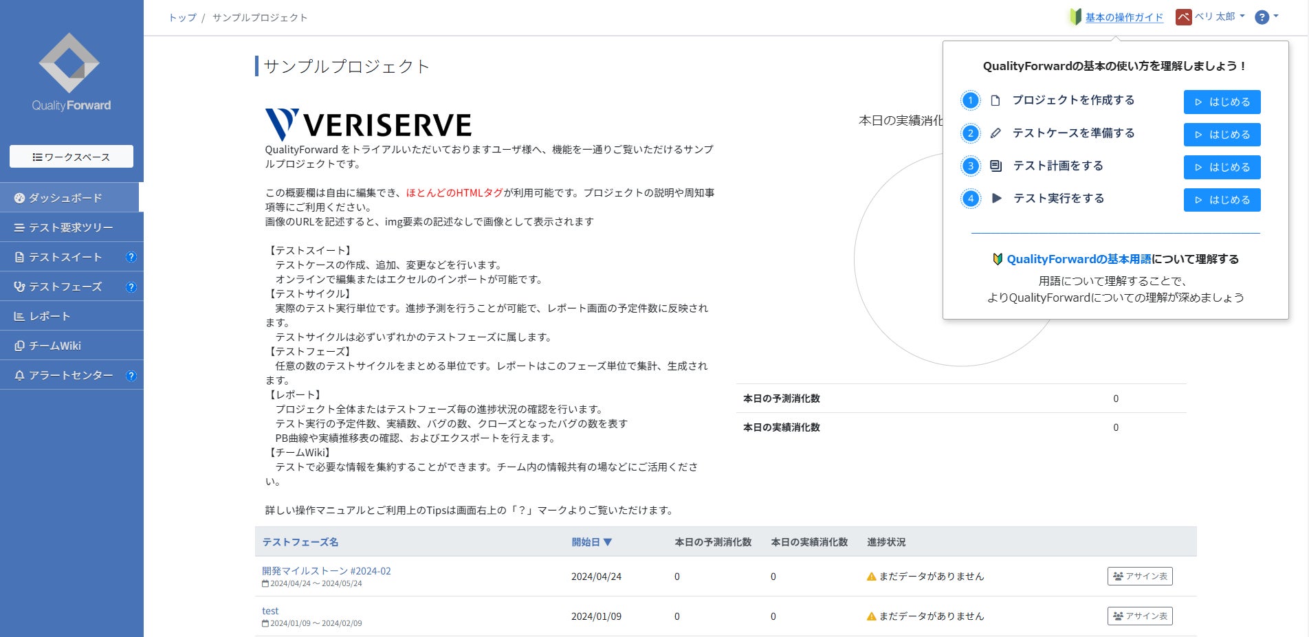 また、ベリサーブが提供するクラウド型ソフトウェアテスト管理ツール「QualityForward(クオリティフォワード)」に「テックタッチ」を導入することで、利便性を格段に向上しました。