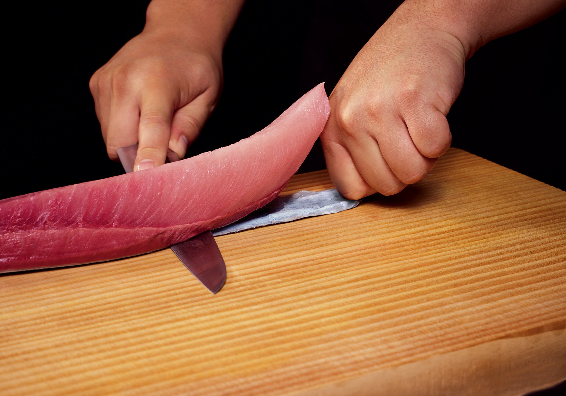 スシローの原点は一軒のすし屋です。職人が立ち上げたすし屋だからこそ、“ネタ”“シャリ”に徹底的にこだわり続けています。「より多くの人にうまいすしを食べてほしい。」その思いがずっと受け継がれてきた企業だからこそ、素材のうまさを引き出すための“ひと手間”である店内での切りつけ、皮引き、炙りなどの店内調理にこだわり続けています。
