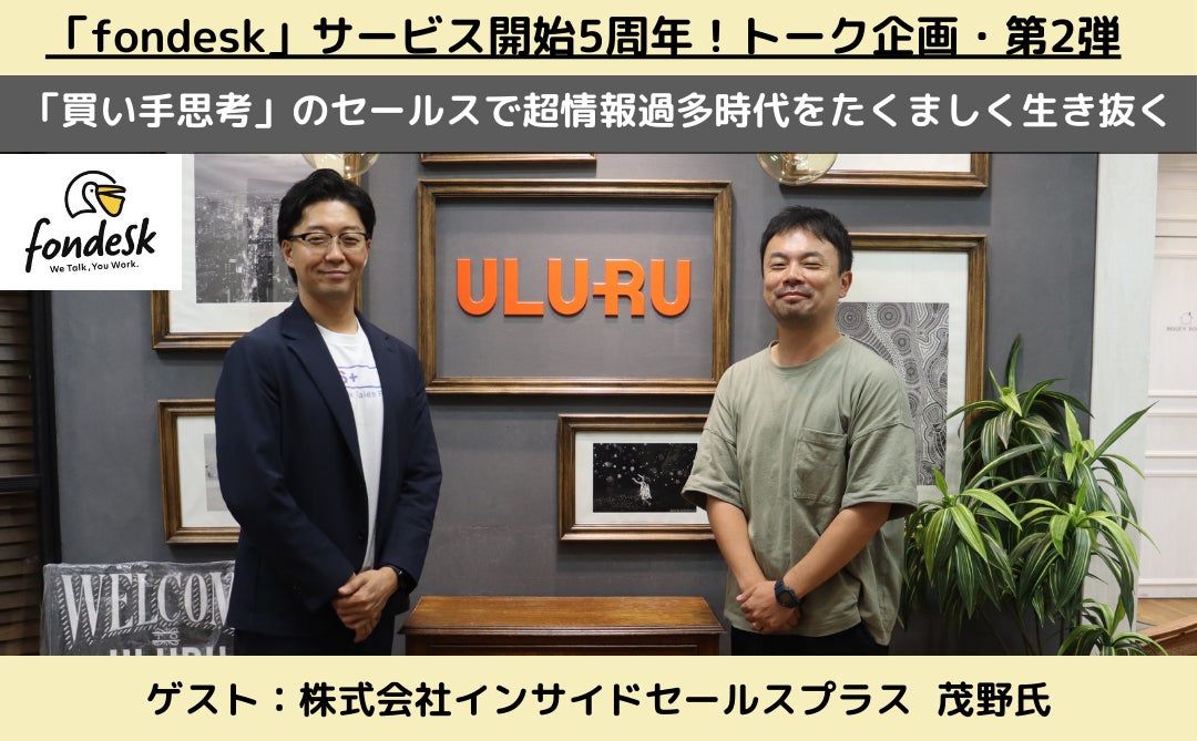 電話代行サービス「fondesk」を管掌する脇村と、インサイドセールスの第一人者として知られ、現場が本当に欲しいと思えるノウハウの提供、売り手と買い手をつなげるマッチングを行うメディア『Inside Sales Plus』を運営する、株式会社インサイドセールスプラス代表取締役の茂野氏が、すべてのセールス担当者の背中を押す熱いトークをお届けします。