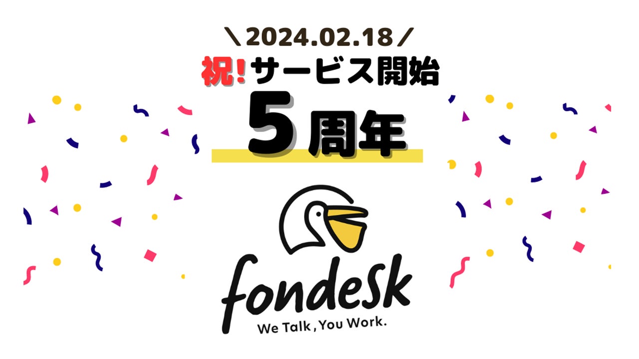 2019年にサービス開始した「fondesk」が今年でリリース5周年を迎えることができました。ユーザーの皆さま、社内外の応援してくださる皆さまに心から感謝しています。いつもありがとうございます。