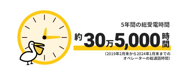 5年間の総受電時間は、約30万5,000時間となりました。この数字は、「fondesk」を導入したクライアント企業様が、電話対応を外部化したことによって生み出された時間(≒効率化された時間)といえます。
