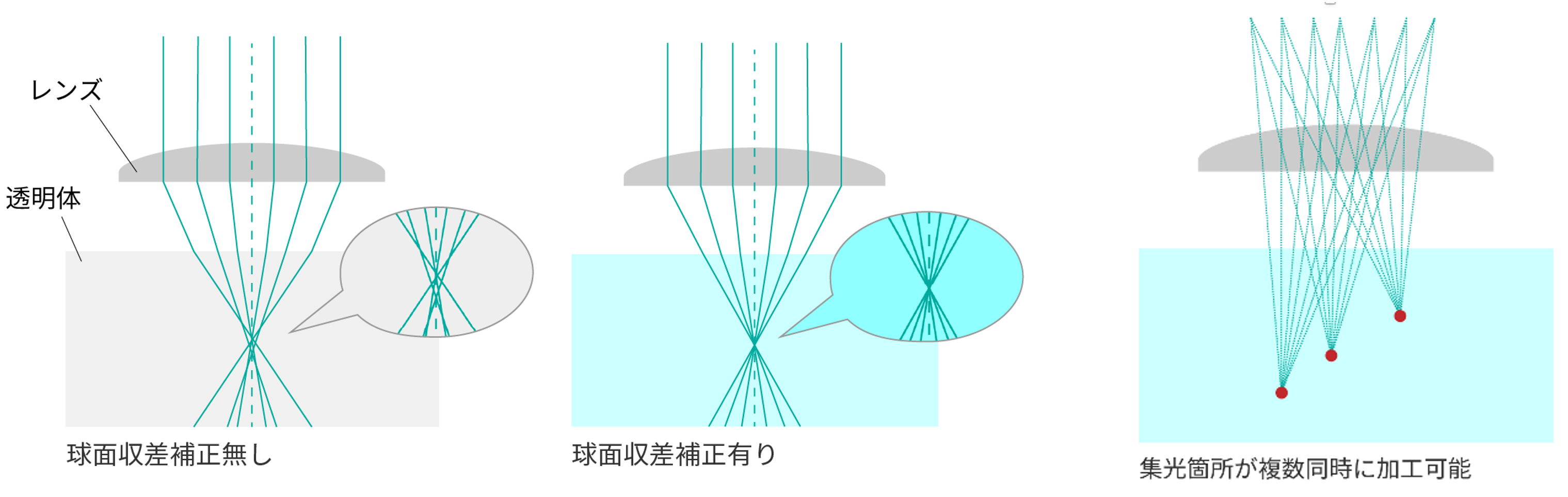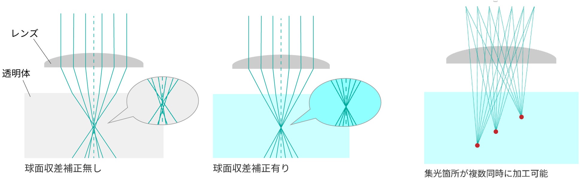 「Femto-pro-HGS」は、従来モデル「Femto-pro」をベースに、収差補正による高精度集光や多点同時加工、透明材料内部の三次元加工、精密微細加工、高精度ステージと連動したパルスオンデマンド制御による安定した等ピッチ加工といった機能を搭載した拡張モデルです。光で3次元の物体を表現するホログラフィ技術を用いることで、光エネルギーを効率的に活用しながらビームを成形し、加工の高精度・高速化を実現します。