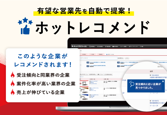 営業支援ツール「ホットプロファイル」、新規開拓先を提案するホットレコメンド機能をリリース