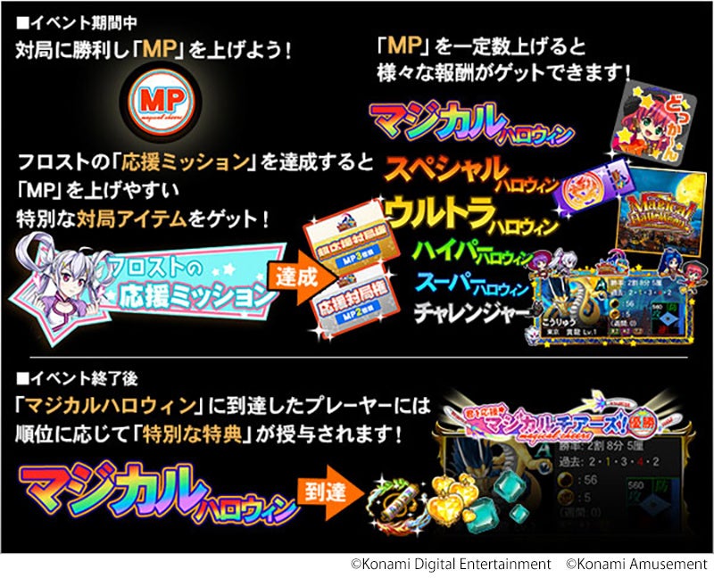 株式会社コナミアミューズメントは、モバイルゲーム『麻雀格闘倶楽部Sp(マージャンファイトクラブエスピー)』にて、「マジカルハロウィン」シリーズの新台『マジカルハロウィン8(マジカルハロウィンエイト)』とのコラボレーションイベントを10月23日(月)から開催することをお知らせします。