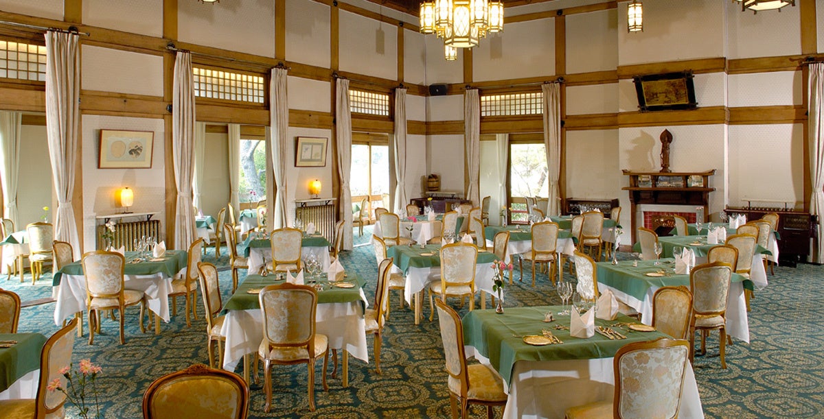 創業100余年の歴史と伝統を誇る奈良ホテルは、風光明媚な奈良公園の高台に位置し、文化財指定の旧大乗院庭園に連なってます。瓦屋根の本館は桃山御殿風檜造り。