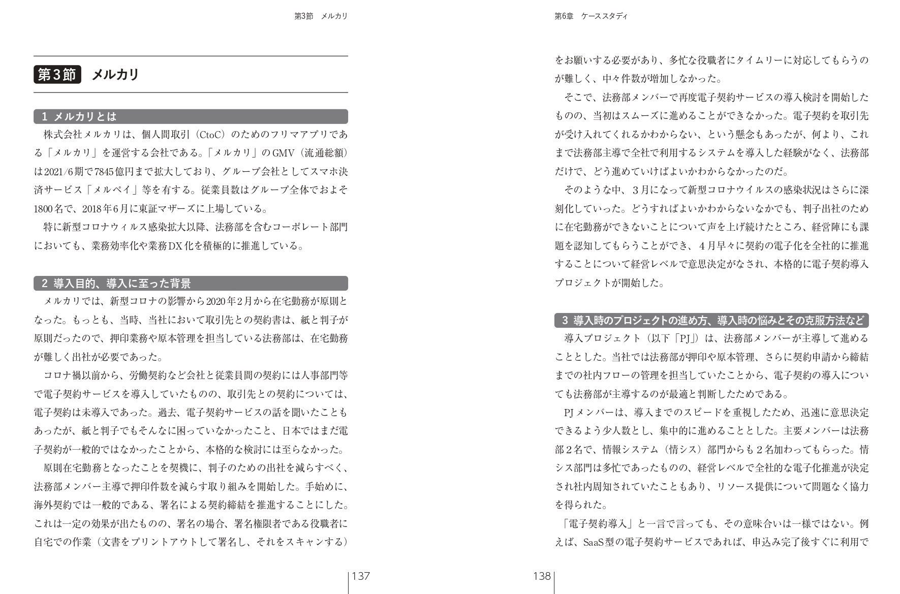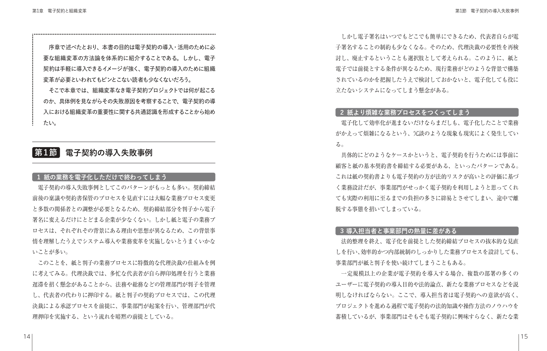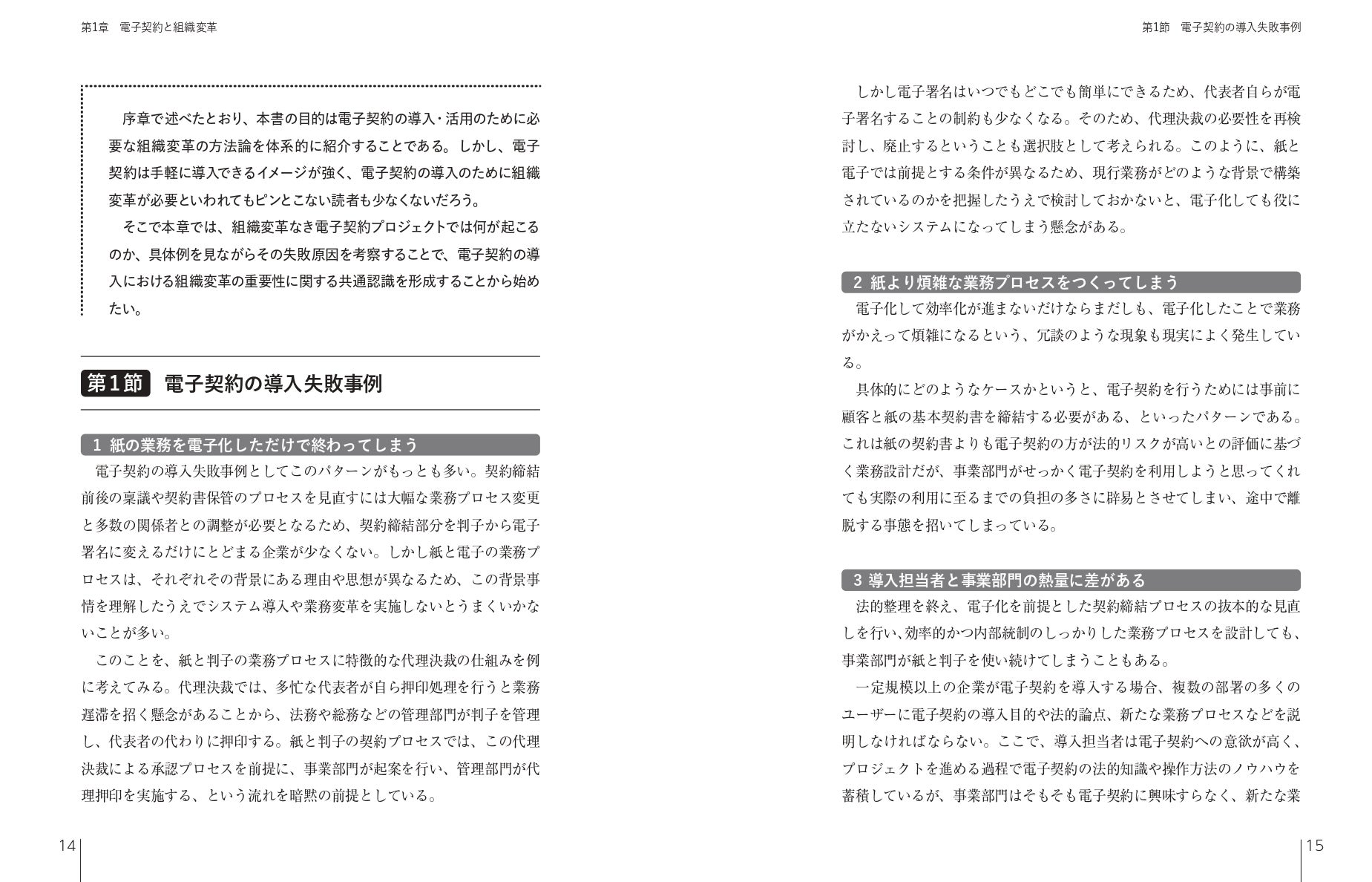 こうした背景を踏まえ、本書では、企業が電子契約サービス「クラウドサイン」を導入する際に、どうすれば効率的に導入ができるかや社内への定着が図れるかを、実際に企業の現場で導入経験のある執筆陣が、自社にあったスムーズな導入方法を実践的に解説しております。