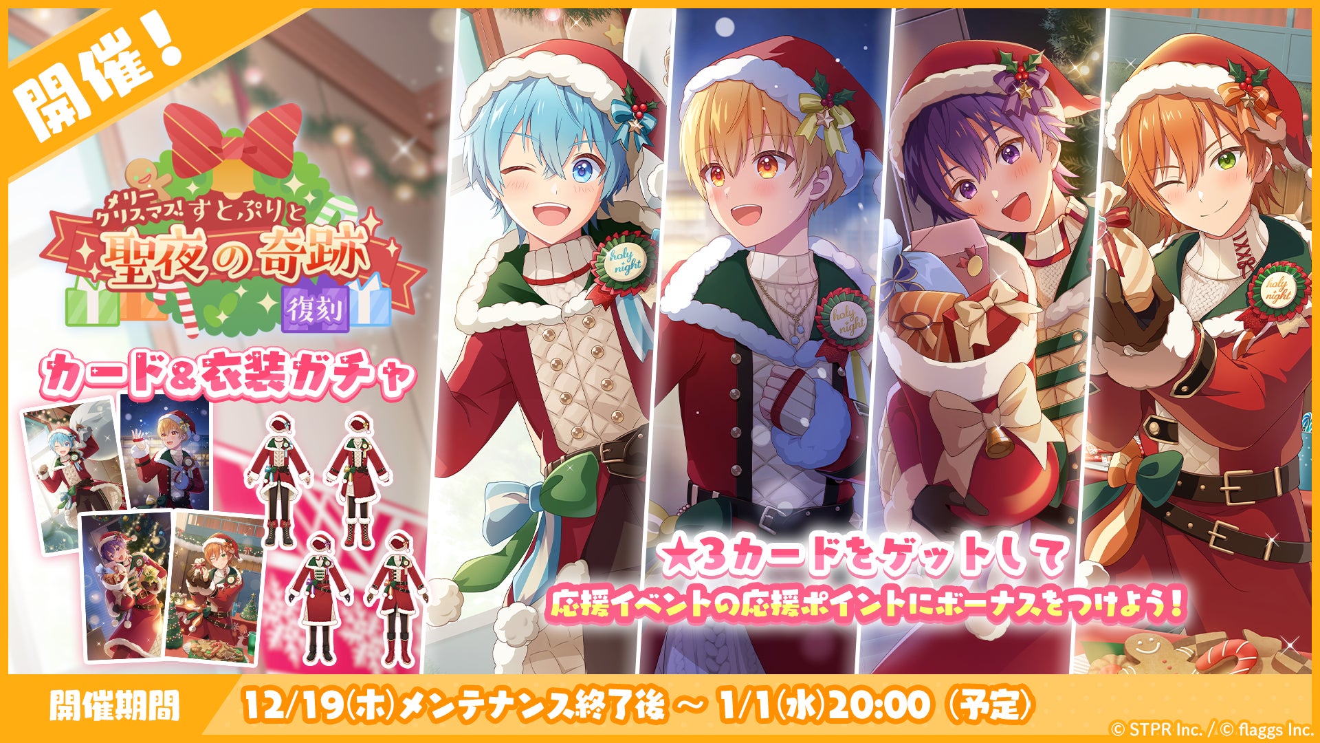 「メリークリスマス!すとぷりと聖夜の奇跡 復刻 カード&衣装ガチャ」を開催!