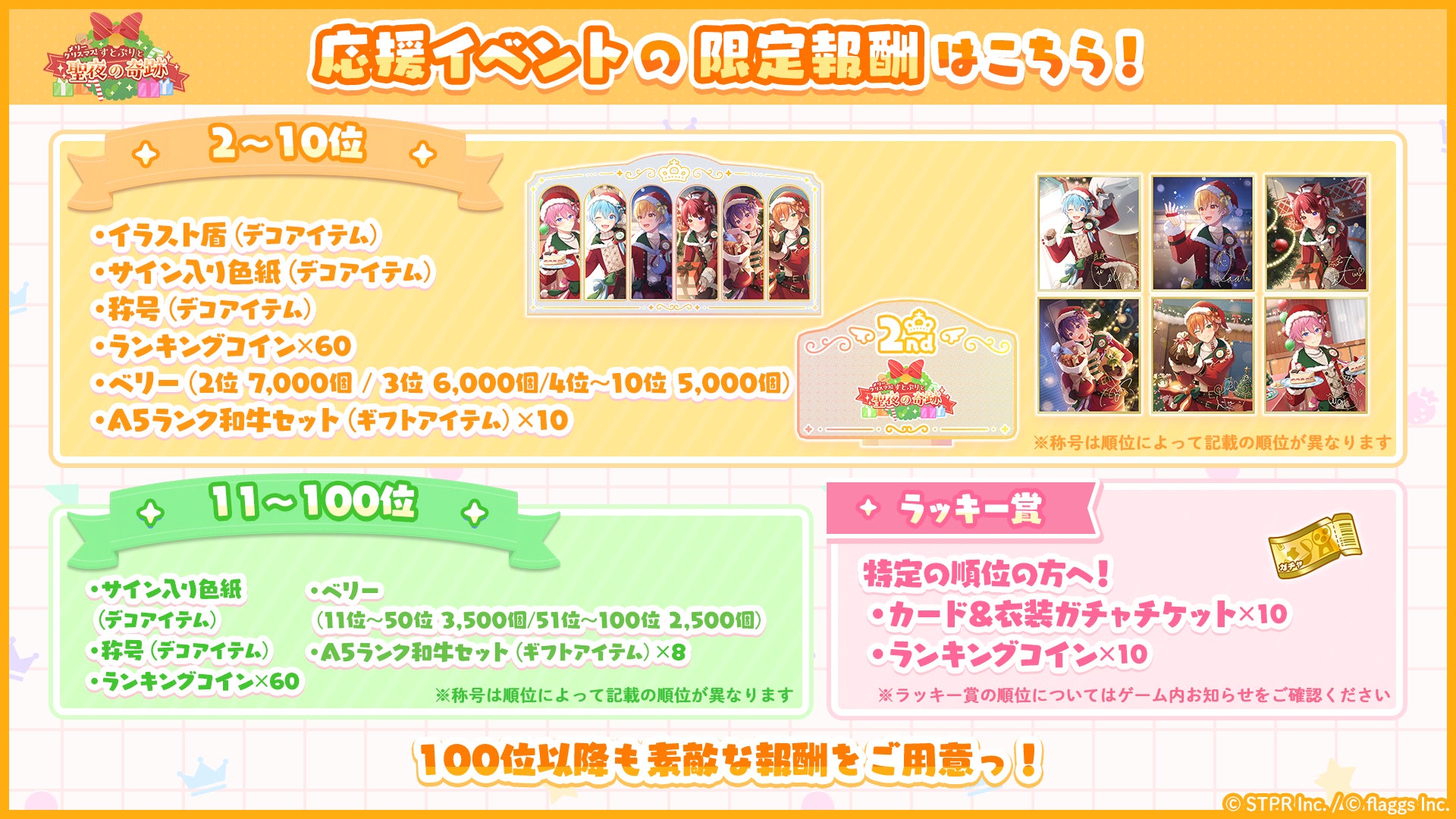 応援イベントのランキングの順位に応じて特別な報酬を入手することができます。