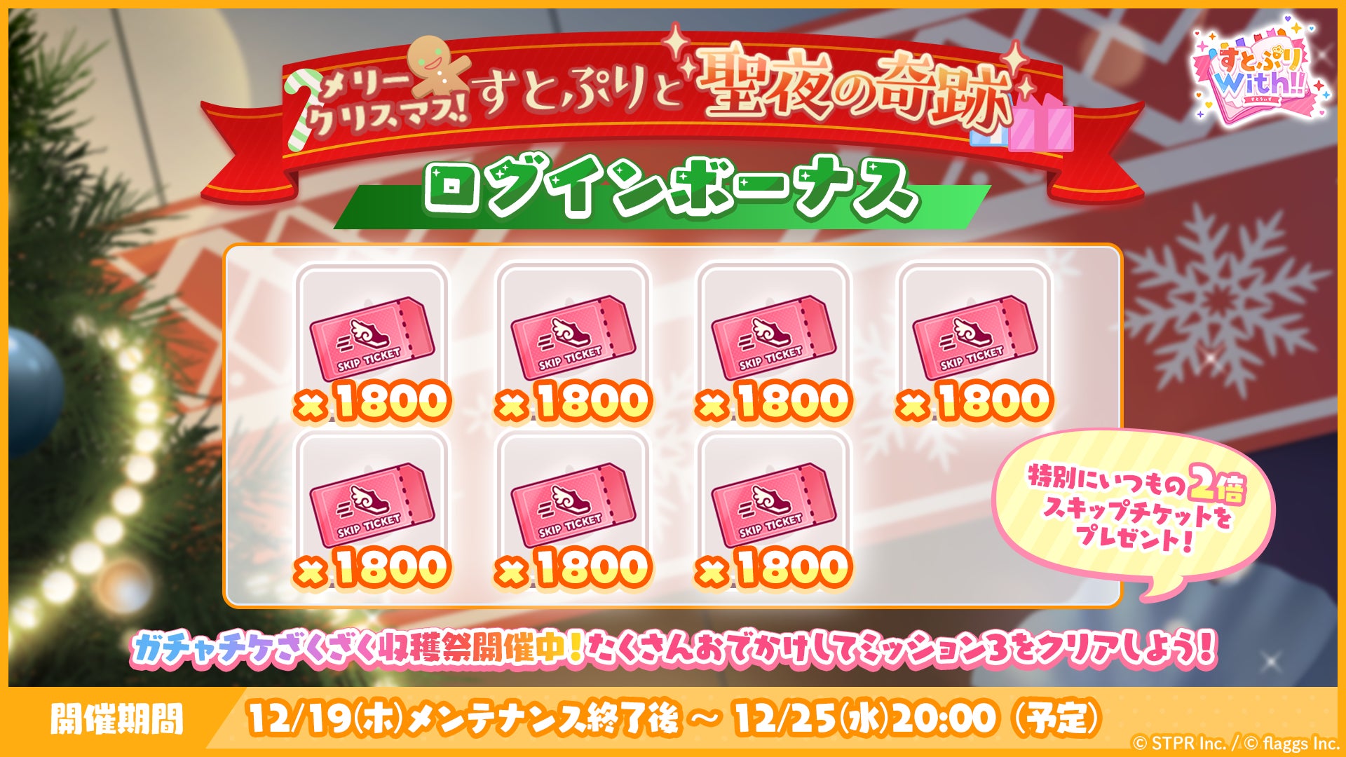 本日12月19日(木)より、「メリークリスマス!すとぷりと聖夜の奇跡 応援イベント ログインボーナス」を実施中です。