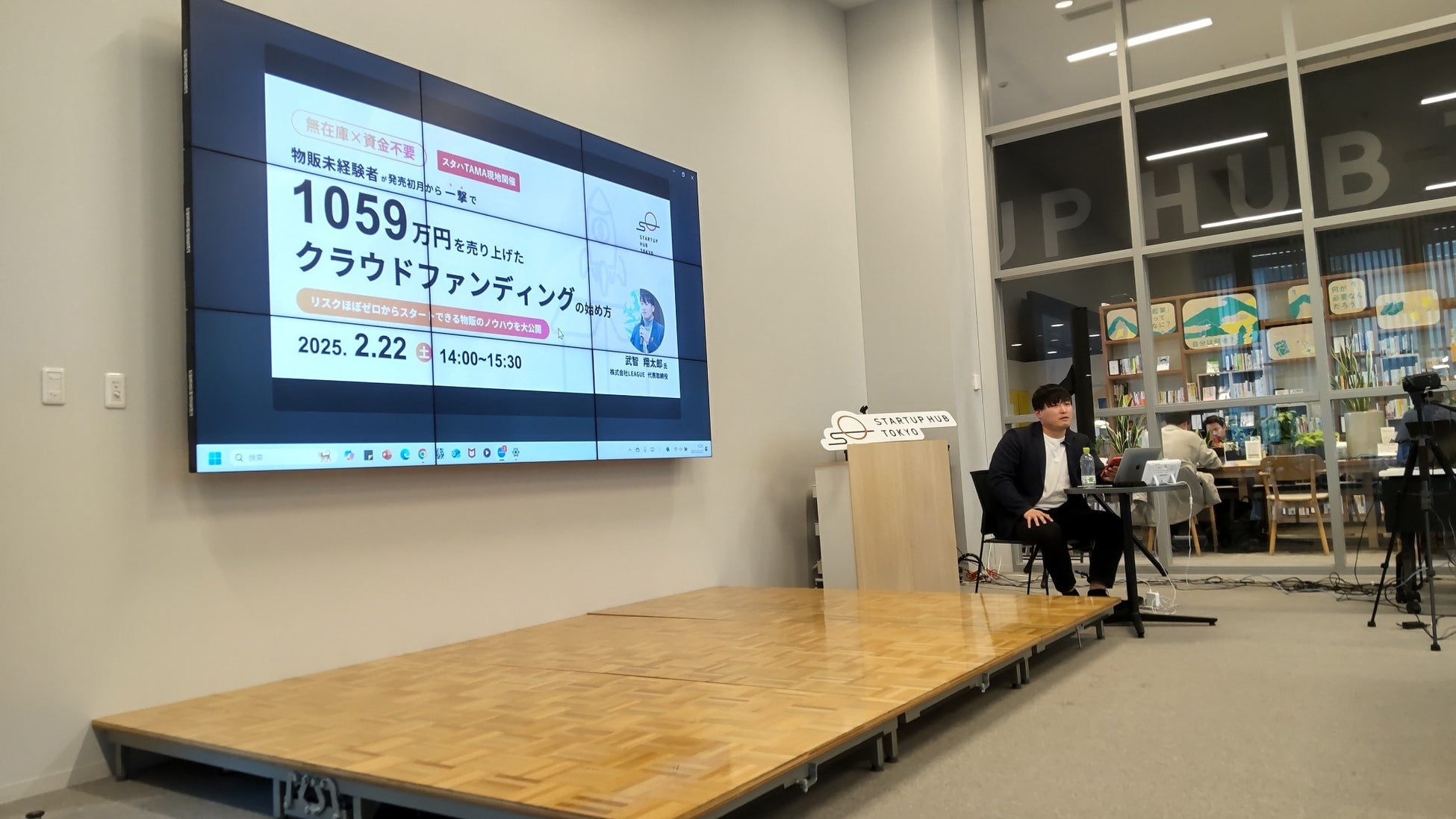 株式会社LEAGUE(本社:東京都武蔵野市)は、TOKYO創業ステーションTAMA Startup Hub Tokyo主催の無料セミナー『【無在庫✖資金不要】物販未経験者が発売初月から一撃で1059万円を売り上げたクラウドファンディングの始め方』を、スタハTAMAイベントスペースで開催しました。