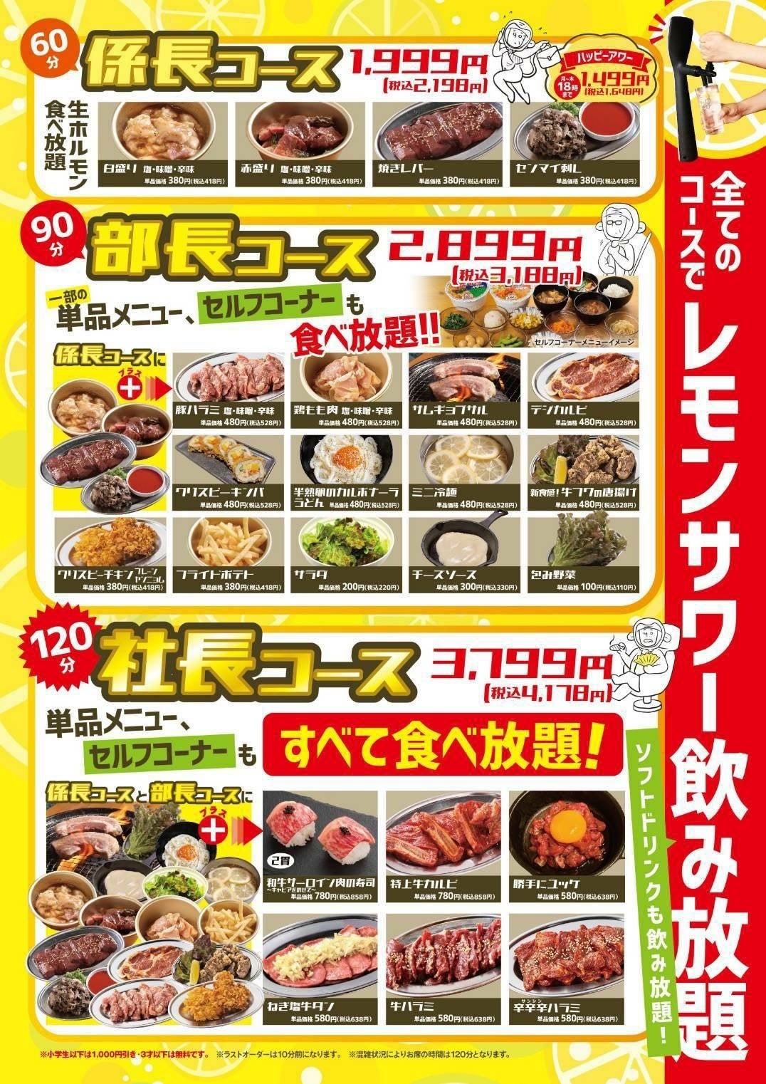 「レモホル酒場」では卓上レモンサワーサーバーが設置されており、いつでもレモンサワーをお楽しみいただけます。なんと、3種のお得な焼肉食べ放題コース全てにレモンサワー飲み放題がついておりますので、ジューシーな焼肉と共に爽やかなレモンサワーを思う存分堪能していただけます!