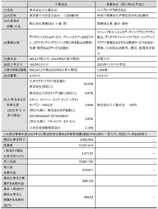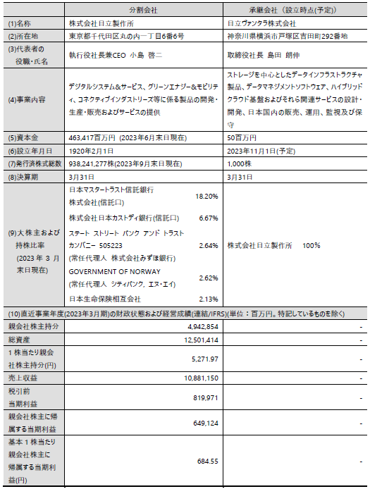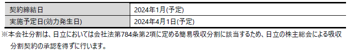 日立を分割会社とし、日立ヴァンタラ株式会社を承継会社とする吸収分割です。