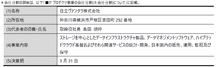 日立の名称、所在地、代表者の役職・氏名、事業内容、資本金、決算期については、いずれも本会社分割による変更はありません。