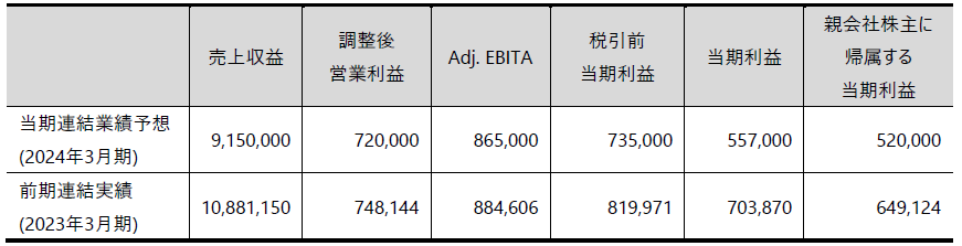 (参考)当期連結業績予想(2023年10月27日公表分)および前期連結実績(単位:百万円)
