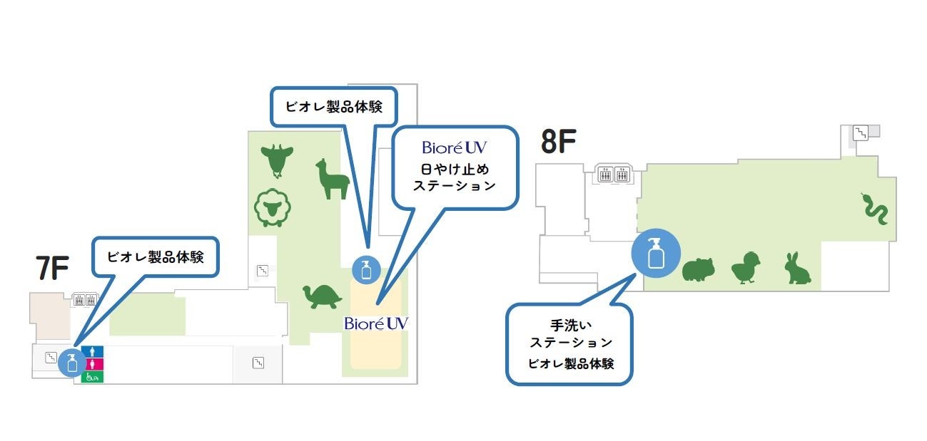 話題の日やけ止めや動物とふれあう時におすすめのハンドソープなど、対象のビオレ製品を無料で体験することができます。