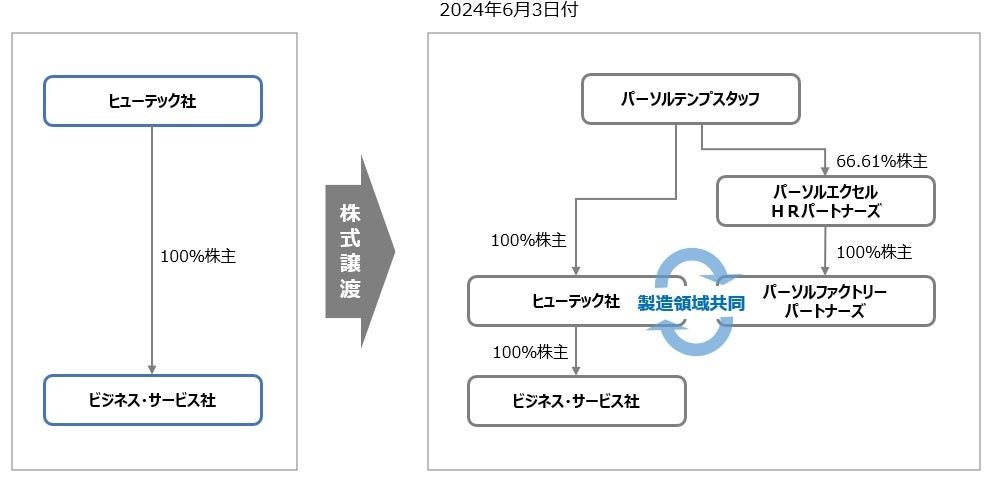こうした両者の強みを活かすべく、パーソルテンプスタッフが、ヒューテックおよびその子会社の株式会社ビジネス・サービスの株式を譲り受けることとなりました。