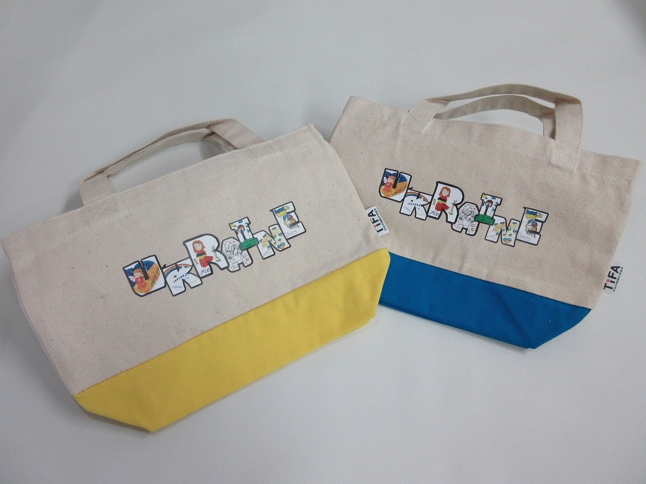 描かれた絵には、子供たちの平和を願う気持ちが込められており、バックの底部色は二つ購入されるとウクライナ国旗の配色となります。