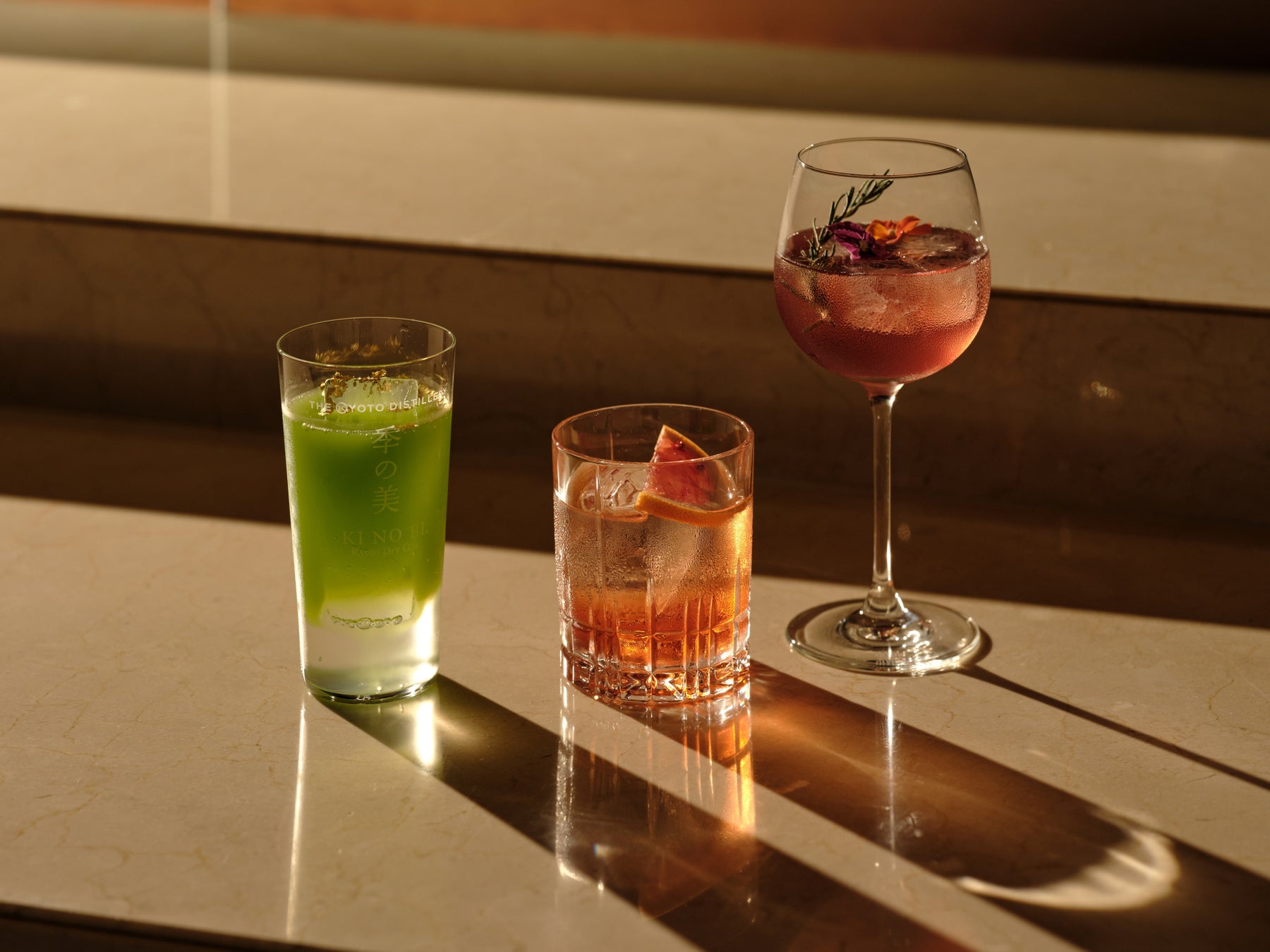 さらに、リニューアルを記念し、京都発のクラフトジンブランド『季の美』とコラボレーションしたポップ アップバーを 5 月 8 日(木)までの期間限定で開催。京都ならではの魅力を詰め込んだオリジナ ルカクテル 3 種をご提供いたします。