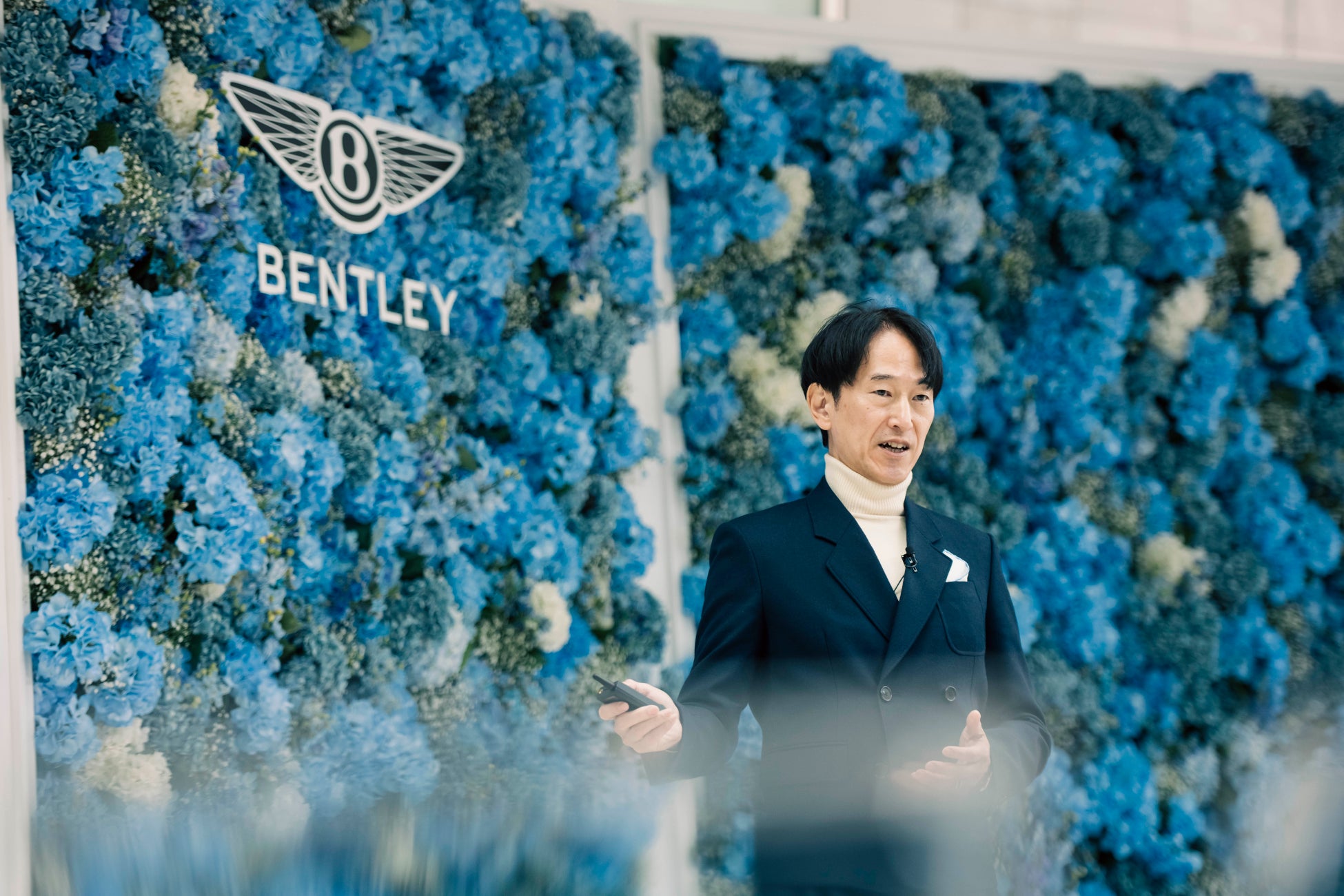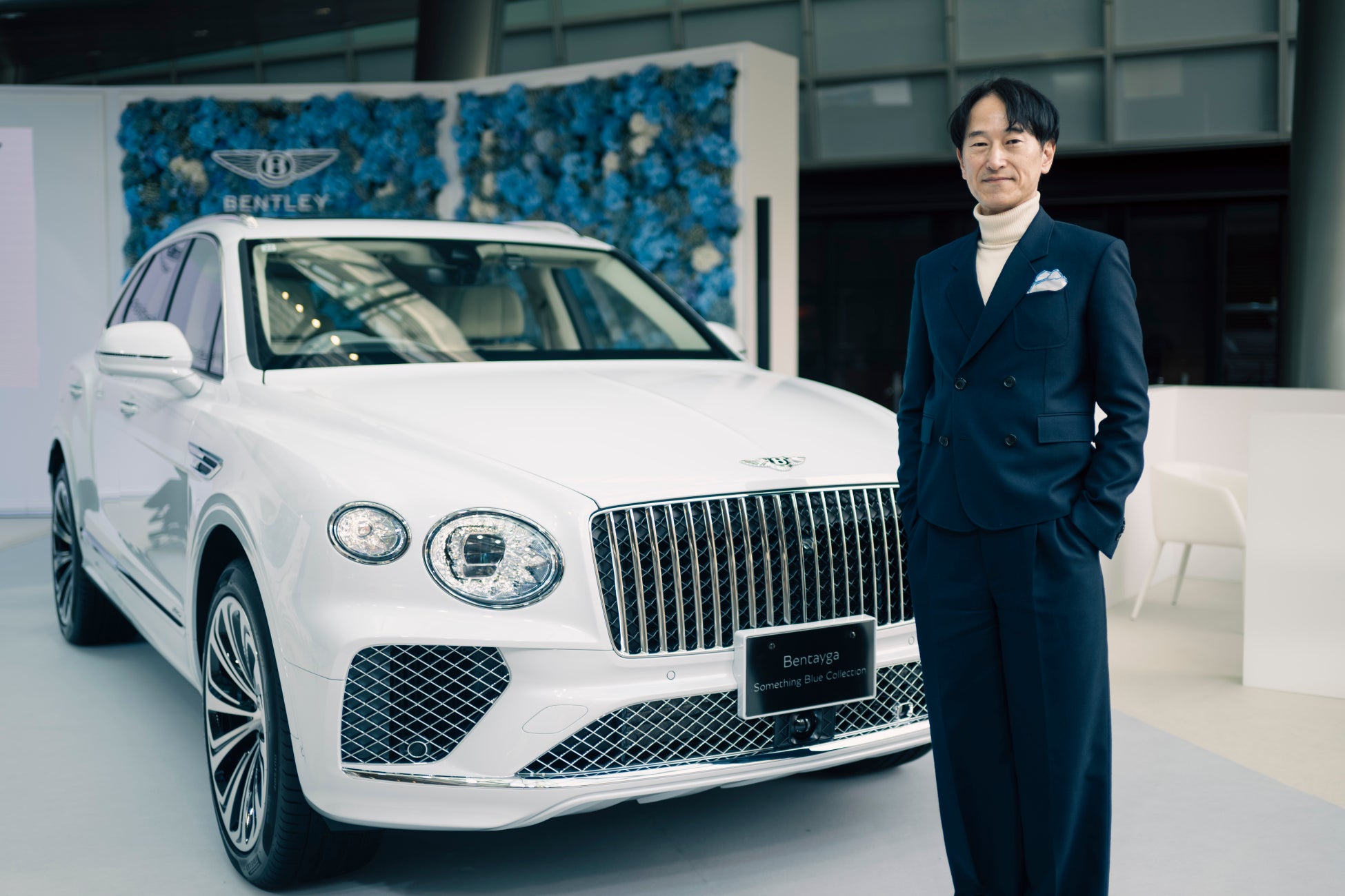イベント前日に開催したメディアプレビューでは、ベントレーモーターズ ジャパンのブランドディレクター 遠藤克之輔も来場し「本モデルは、花嫁が結婚式で身につけると幸せになれるとされる4つのアイテム「Something Old」「Something New」「Something Borrowed」「Something Blue」から成る“Something Four”に着想を得て名付けました。なかでも「Something Blue」という言葉には、今を生きる女性と響き合う力があると感じました。ブルーサファイアの澄んだ輝き、ブルーベルの可憐な佇まい、ジーンズスタイルのカジュアルさ、そしてドライブの先に広がるブルースカイの解放感など、ブルー単なる色ではなく、女性の日常にそっと寄り添う情景の色だと感じています。それらが響き合い、ブルーを纏うたびに、女性らしいスタイルと気持ちが凛と引き立つ、そんな物語をこの一台に込めました。その想いをかたちにするため、ベントレーのビスポーク部門マリナーに在籍する女性デザイナーとともに、今を生きる女性に寄り添う、優雅で特別な一台へと仕立てています」と「Bentayga Something Blue Collection」に込めた想いと制作背景について語りました。