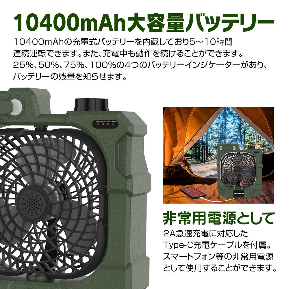 10400mAhバッテリー搭載の首振り機能付きポータブル扇風機がAmazon・楽天市場Yahoo!ショッピングで割引セール!