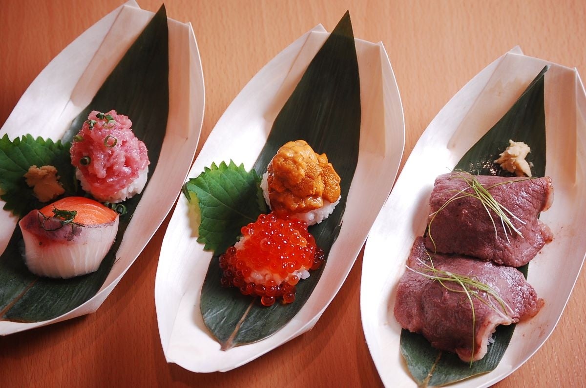 熱田で食べ歩きをするならまずこちら!旅人が癒されるような気軽にお召し上がりいただけるメニューをご用意しています。地元愛知の牛肉を使用した肉寿司や、うにいくら、鯛の海鮮てまり寿司はいかがでしょうか。あつたnagAyaにお立ち寄りの際はぜひ、お嗜みください。