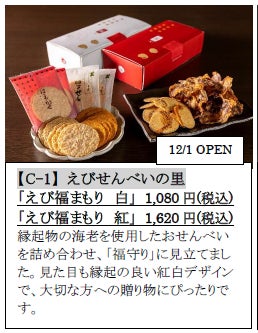 1948年創業。知多半島の美浜町に本店を構え、年間来場者数約100万人のえびせんべい製造直売店が熱田に出店!No.1人気「えびせんいろいろ」をはじめ、当店自慢のおせんべいがずらりと並びます。さらに、出店に合わせ考案した熱田限定の新商品も登場!知多の風土に育まれた親しみあるなつかしい味わいをお楽しみください。