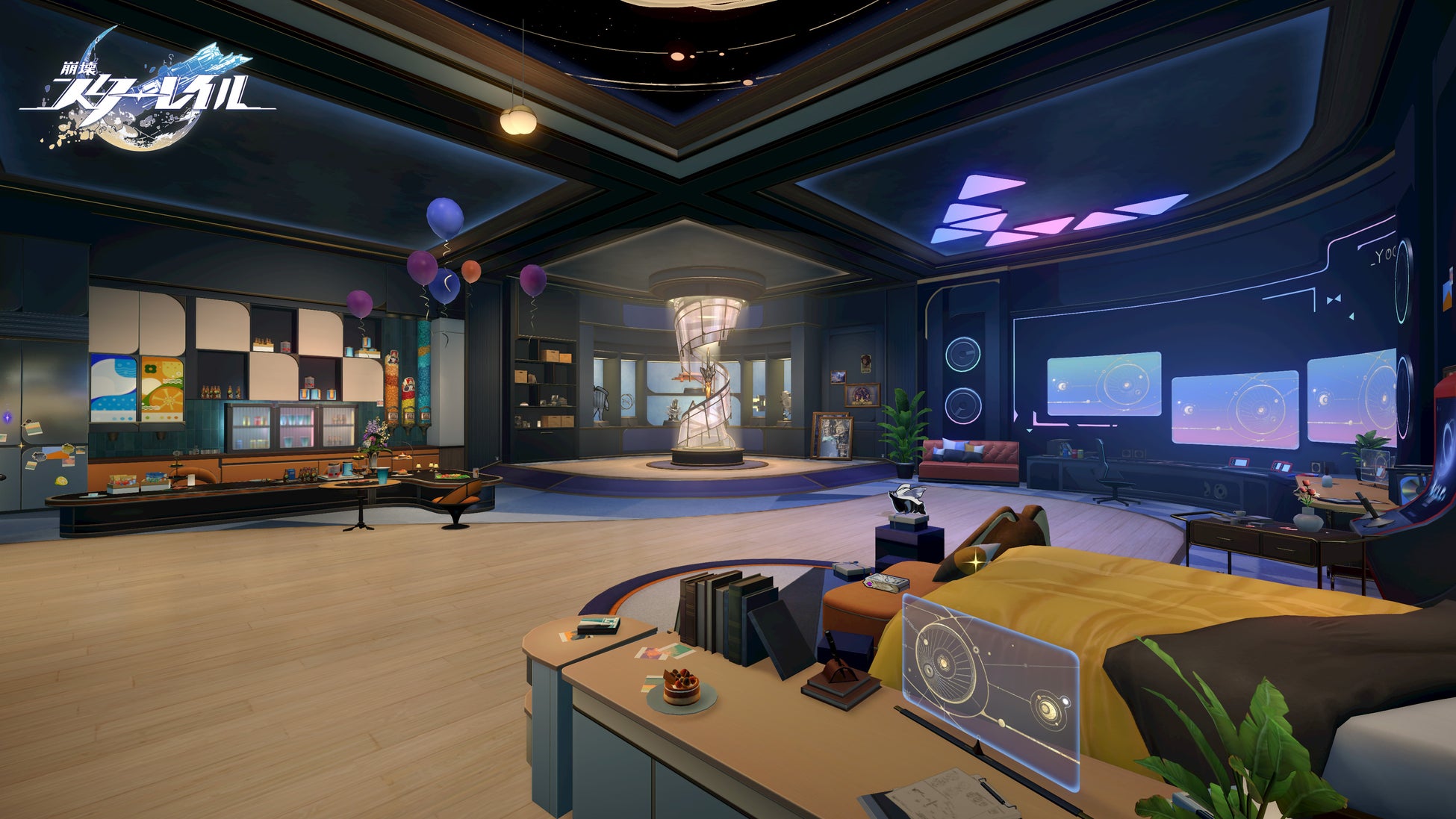 パーティー車両の階段を上ると、開拓者だけの専用ルームに入れます。Ver.2.7で実施予定のイベント「コズミック・ハウジングガイド」では、2階の空き部屋を思うままに改造して、自分だけの空間に仕上げることができます。リラックスエリアやバスルームなど、多種なエリアを持つルーム内を当番で入手する「列車基金」で買った家具で彩ることもできます。空っぽだった部屋を、理想的な空間に改造してみましょう!
