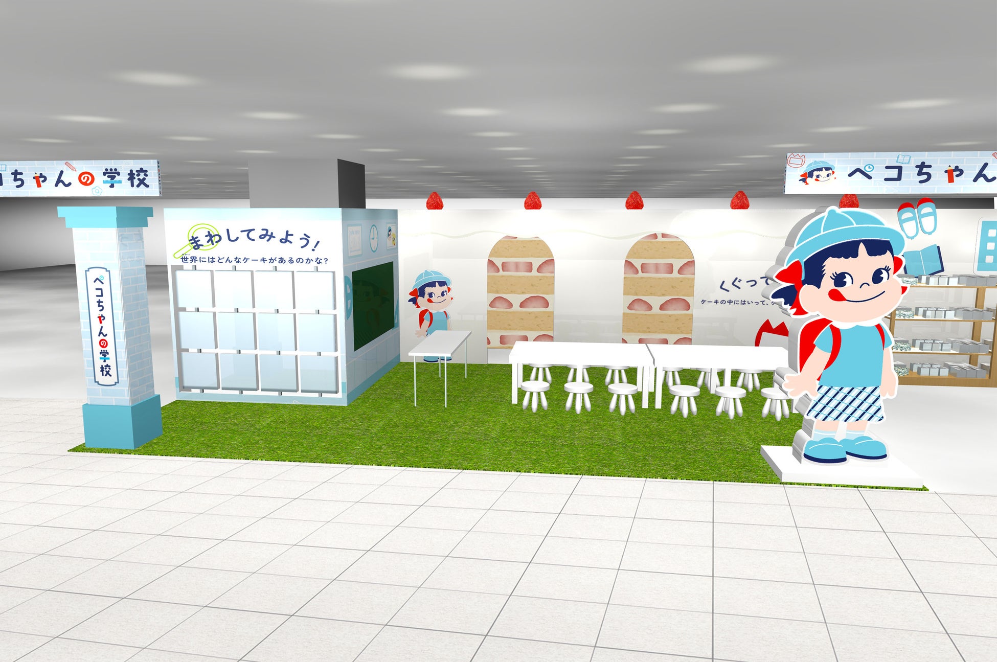 不二家のマスコットキャラクターであるペコちゃんが通う学校をイメージし、モチーフにした、ケーキやお菓子にまつわる秘密が学べる体験型ショップ「ペコちゃんの学校」を2025年3月26日(水)から4月15日(火)の期間限定で大阪・あべのハルカス近鉄本店にオープンします。昨年夏に東京・新宿で実施し好評を博したショップが、今回満を持して大阪に初上陸します。