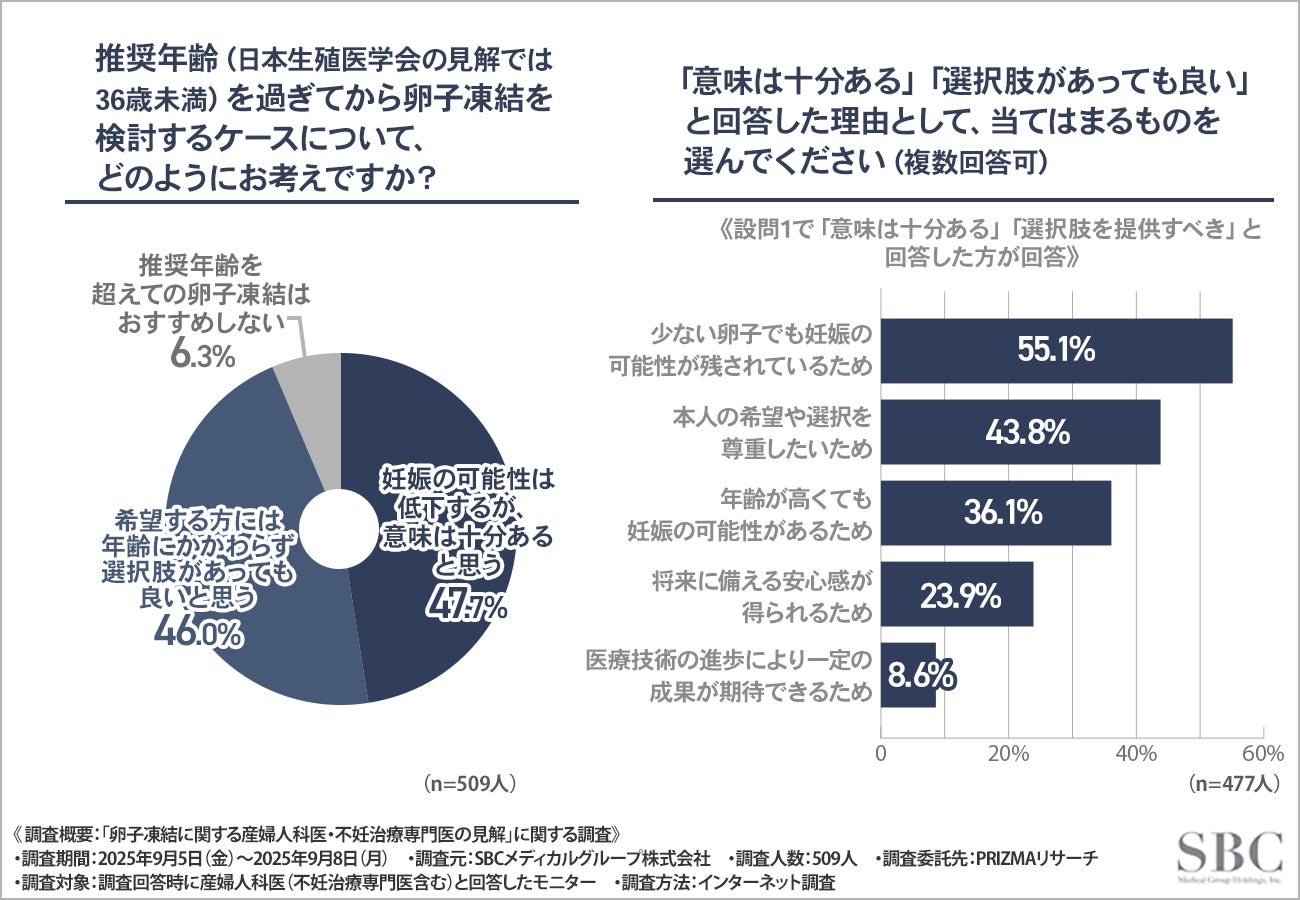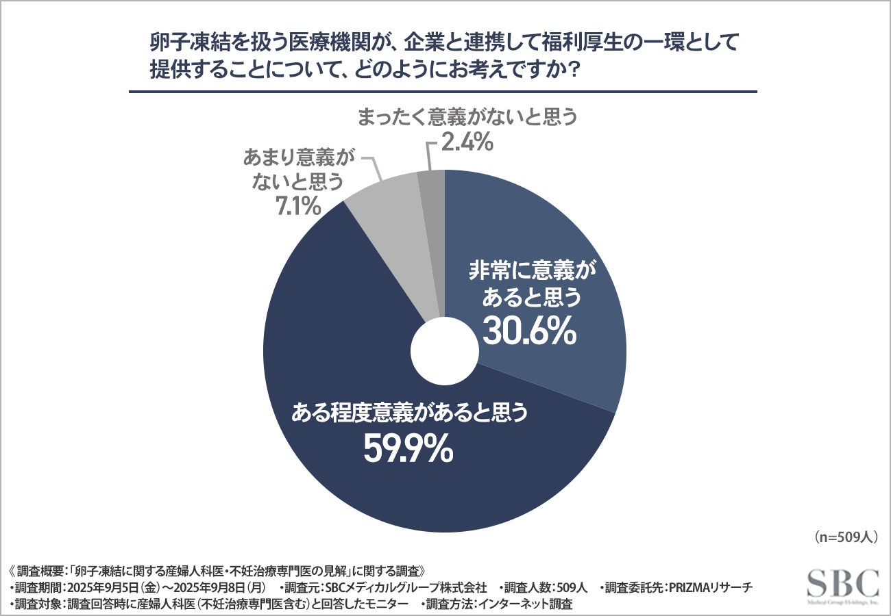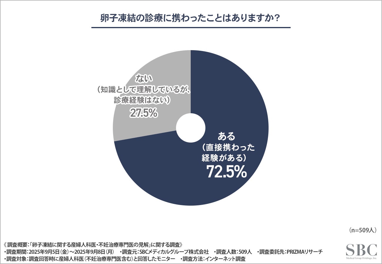 SBCメディカルグループホールディングス(所在地:米国カリフォルニア州、CEO:相川 佳之)の連結子会社であり、全国の医療機関への経営支援事業を展開するSBCメディカルグループは、産婦人科医(不妊治療専門医含む)509名を対象に、卵子凍結に対する見解や課題認識、今後の支援のあり方について調査を実施しました。