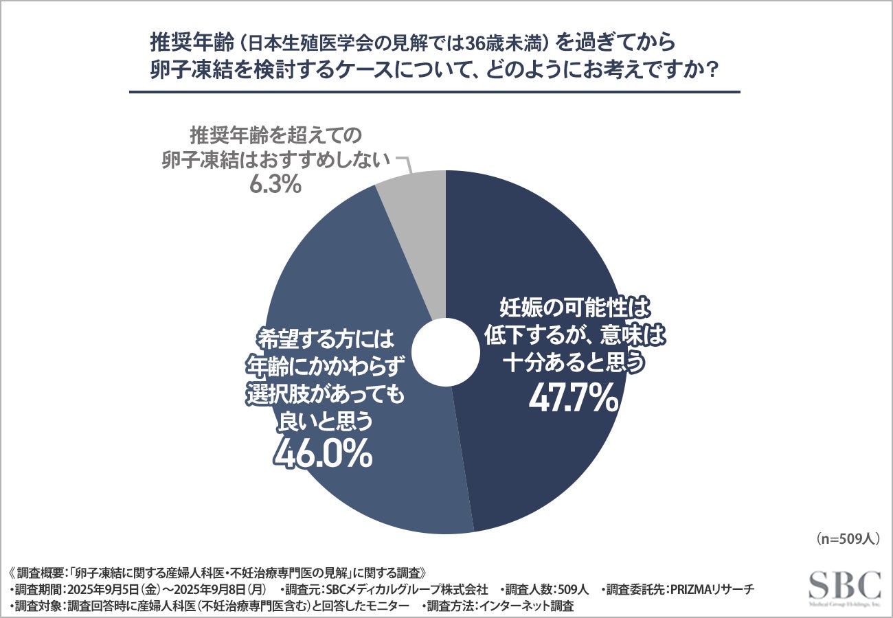 ・一定の妊娠可能性が残されているという医学的観点と、本人の希望を尊重する姿勢の双方から、推奨年齢を超えても卵子凍結には意義があると考える医師が多いことが明らかに