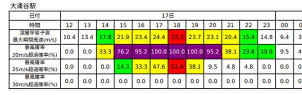 「AI暴風確率予測」は、設定した基準値を超過する確率を算定します。