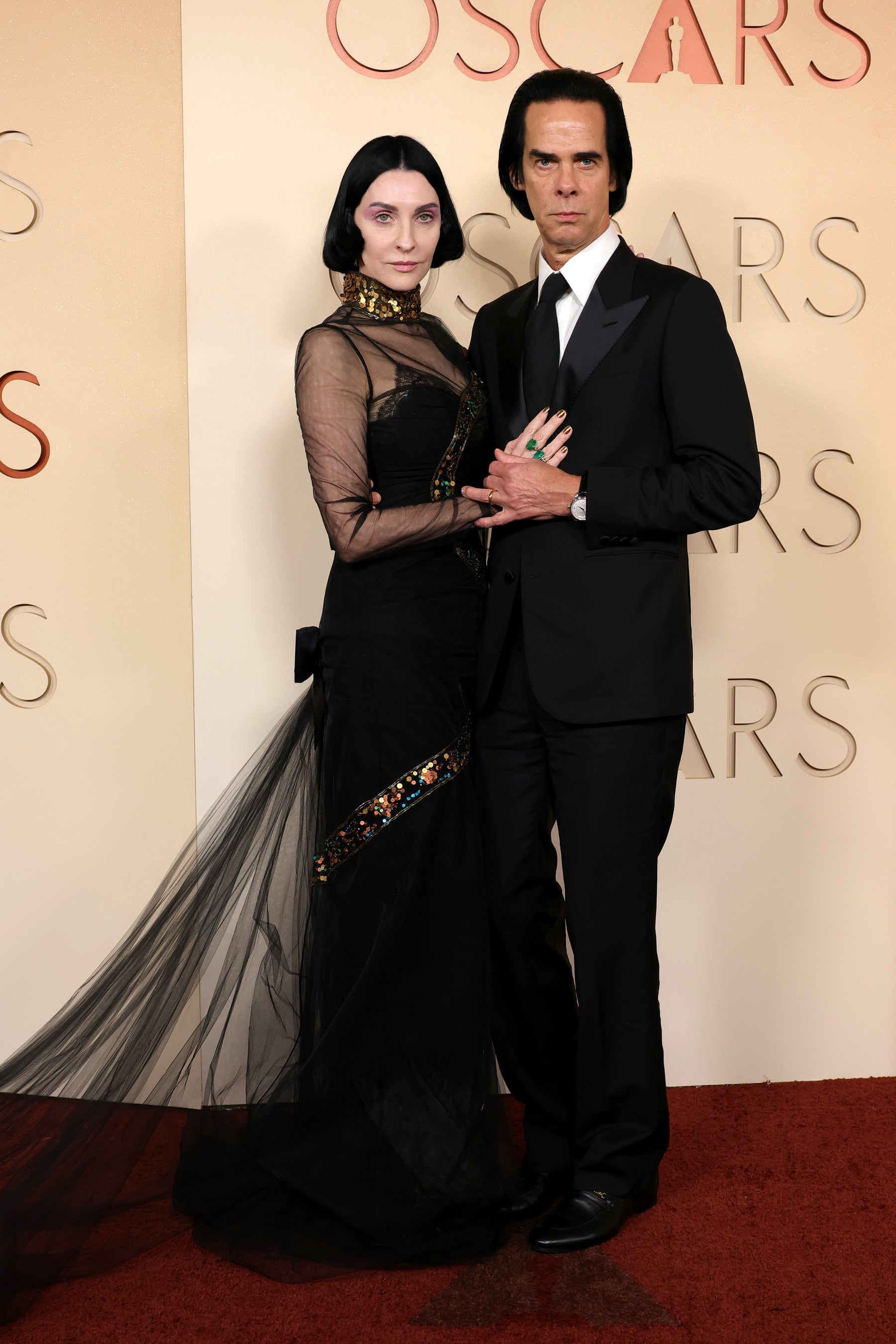 ニックはレッドカーペットにて、クリエイティブ ディレクター アレッサンドロ・ミケーレが彼のために特別に制作したルックを着用。妻のスージーは2026年春夏コレクション’ファイアーフライズ(FIREFLIES)’ のルックを着用