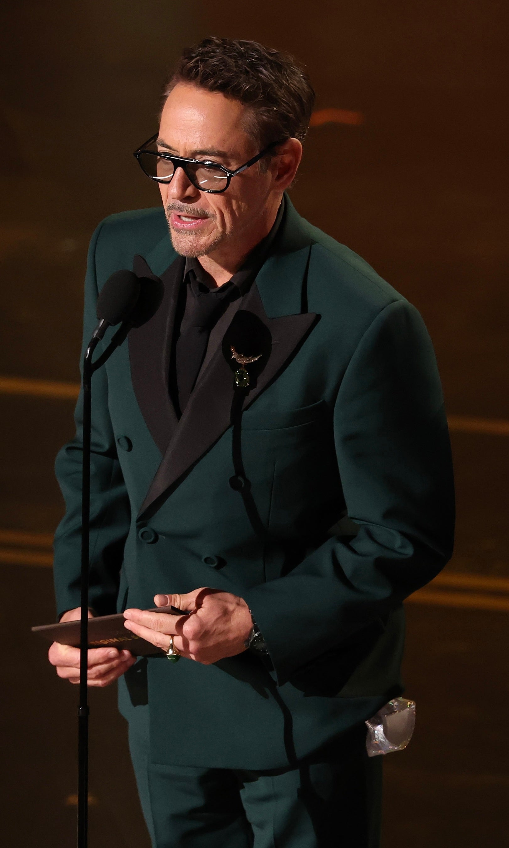 プレゼンターとして登場したロバート・ダウニー・Jr.は、クリエイティブ ディレクター アレッサンドロ・ミケーレが彼のために特別に制作したルックを着用