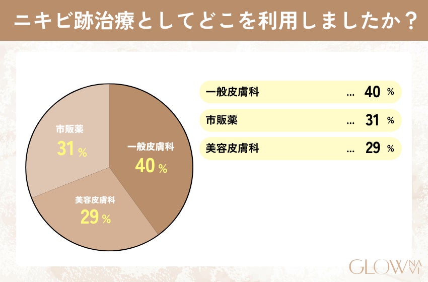 ニキビ跡治療で一般皮膚科を利用した人は全体の40%で一番多い回答となった