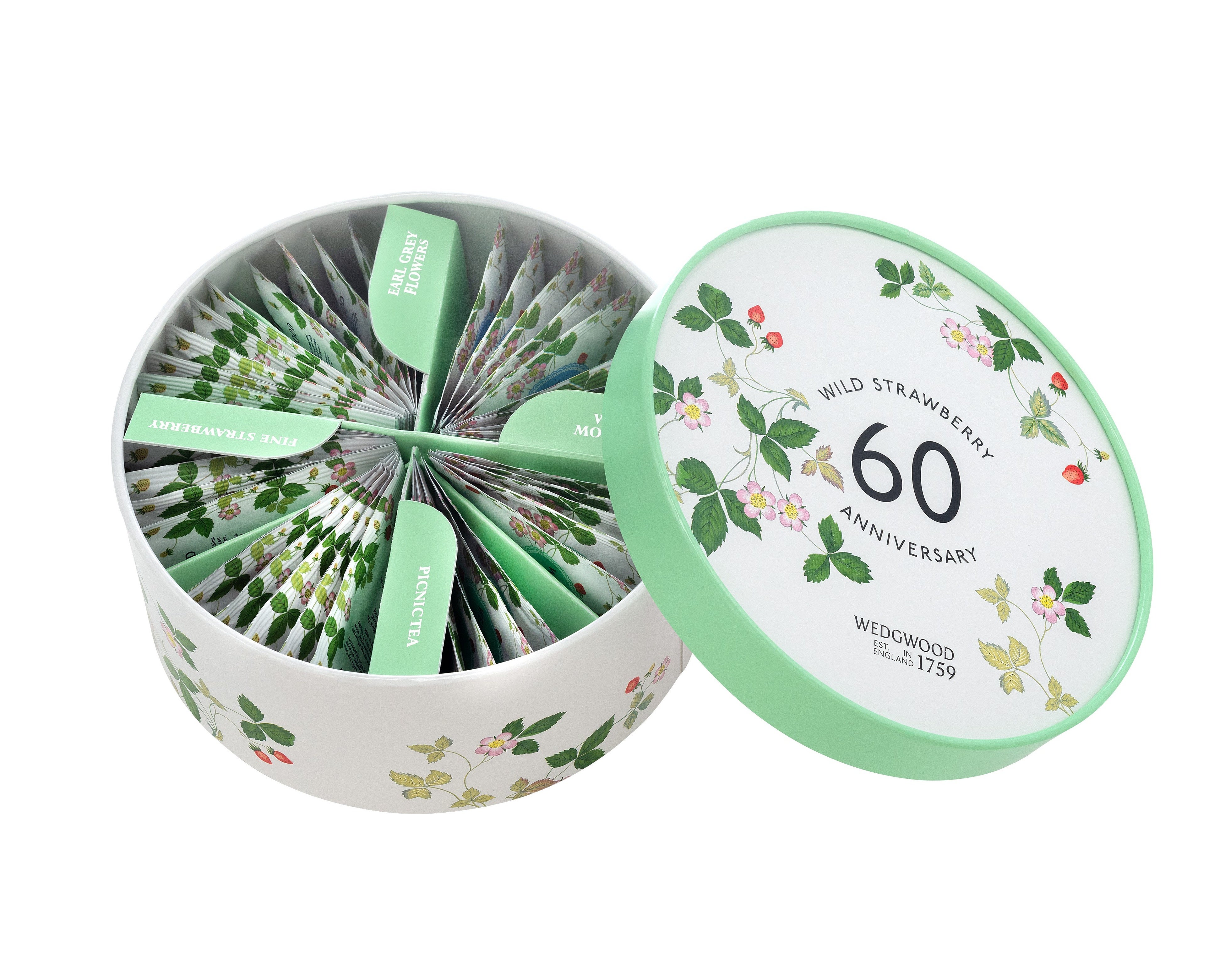 この度、フード&ビバレッジ コレクションから60周年を祝い、パステルグリーンの柔らかな色合いで 可憐な野いちごがよりひき立つ特別なパッケージのアニバーサリーアイテムが登場しました。 4種類のブレンド紅茶がたっぷり楽しめるセットは、特別なティータイムに活躍することで しょう。 大切な方や、母の日の贈り物へも最適です。
