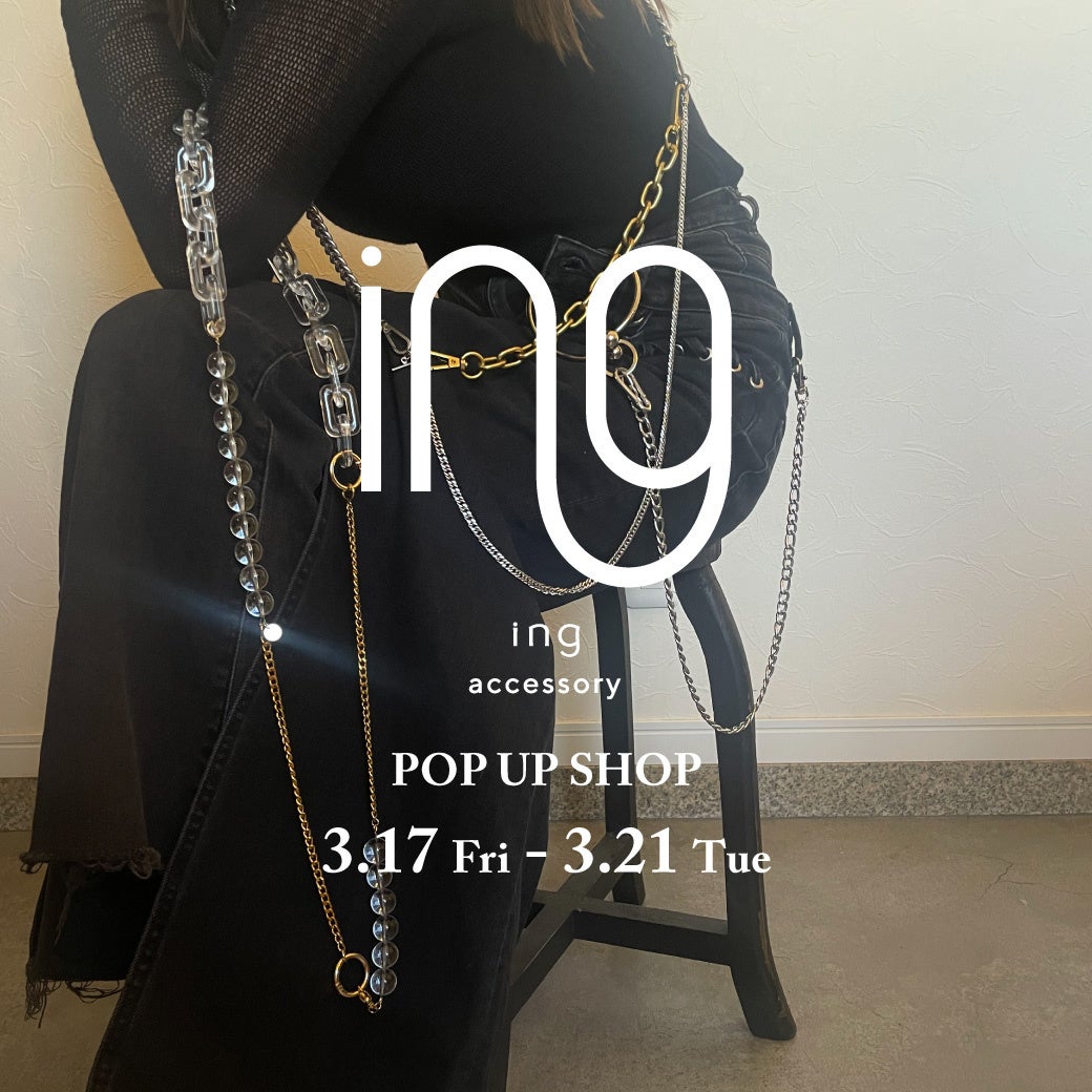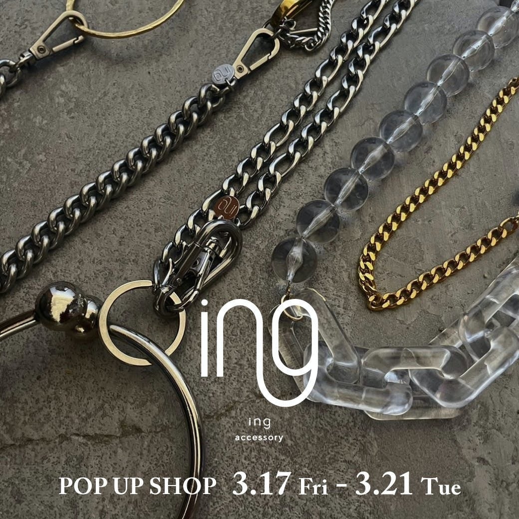 シンプルだけどどこかインパクトのあるデザインが魅力のユニセックスアクセサリーブランド「ing」のPOPUPを開催いたします。