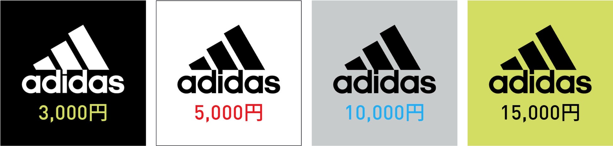 「adidas eギフトカード」3,000、5,000、10,000、15,000円(非課税)