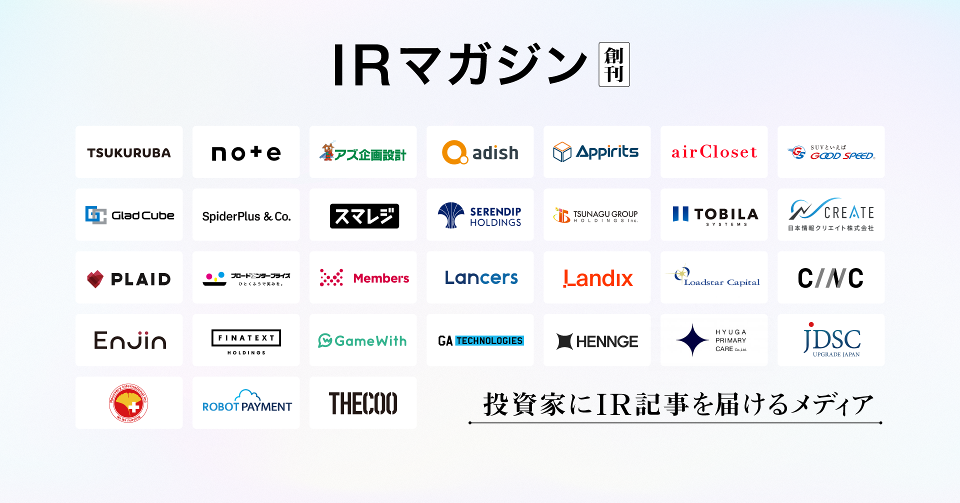 IRマガジンの参加企業は以下のとおりです(順不同。各参加企業の「株式会社」省略)。
