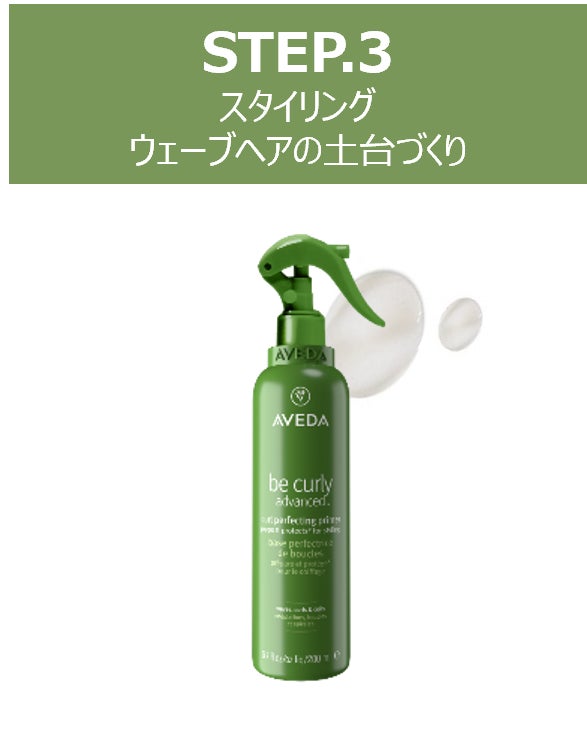 ウェーブヘアの土台を作る洗い流さないプレスタイリングスプレー。もつれをほぐし、切れ毛を防ぎ、スタイリングをしやすくします。