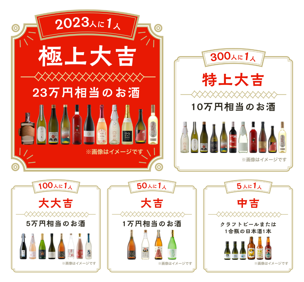 - 23万円分のお酒詰め合わせプレゼント「酒ガチャ福袋 2023」抽選キャンペーン