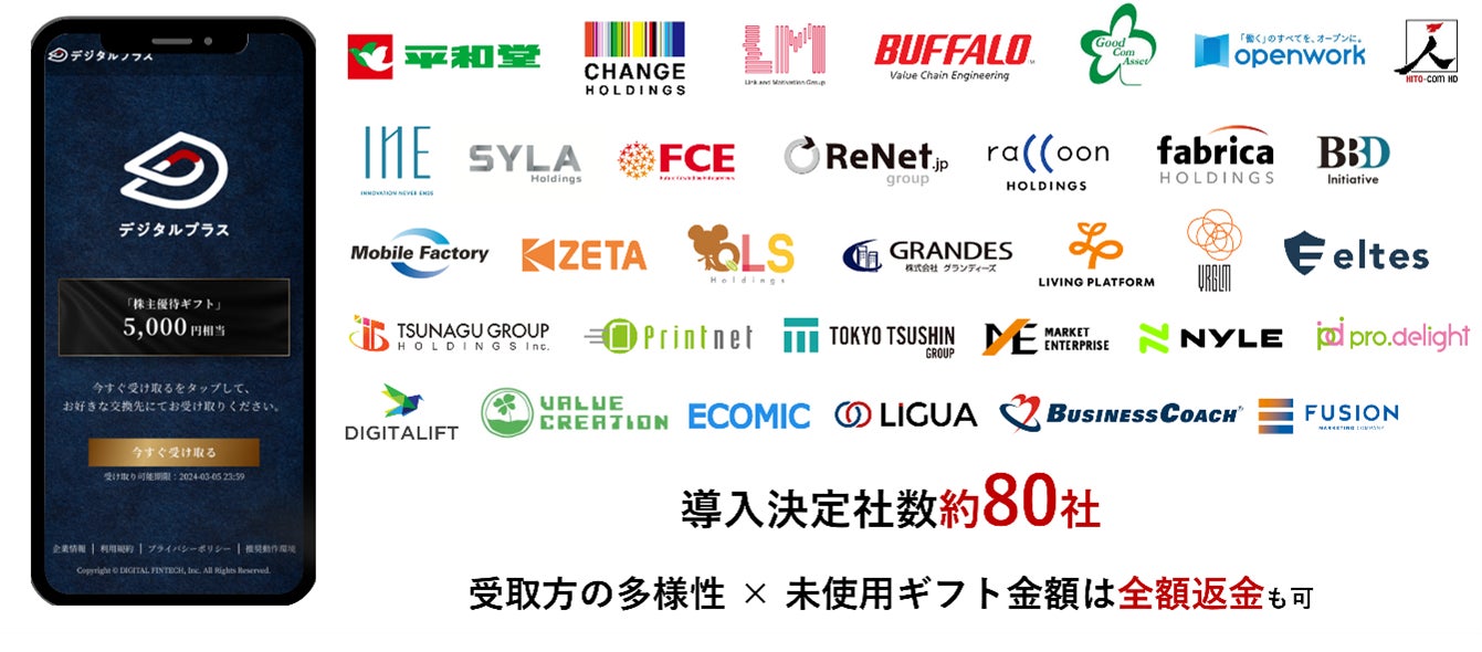 また、デジタルギフト®の仕組みを活用することで、1円単位での柔軟な分配設計が可能となり、額面単位に縛られない柔軟な優待設計を実現します。本制度は等分配を基本設計としつつ、保有株式数や保有期間に応じた設計も可能です。